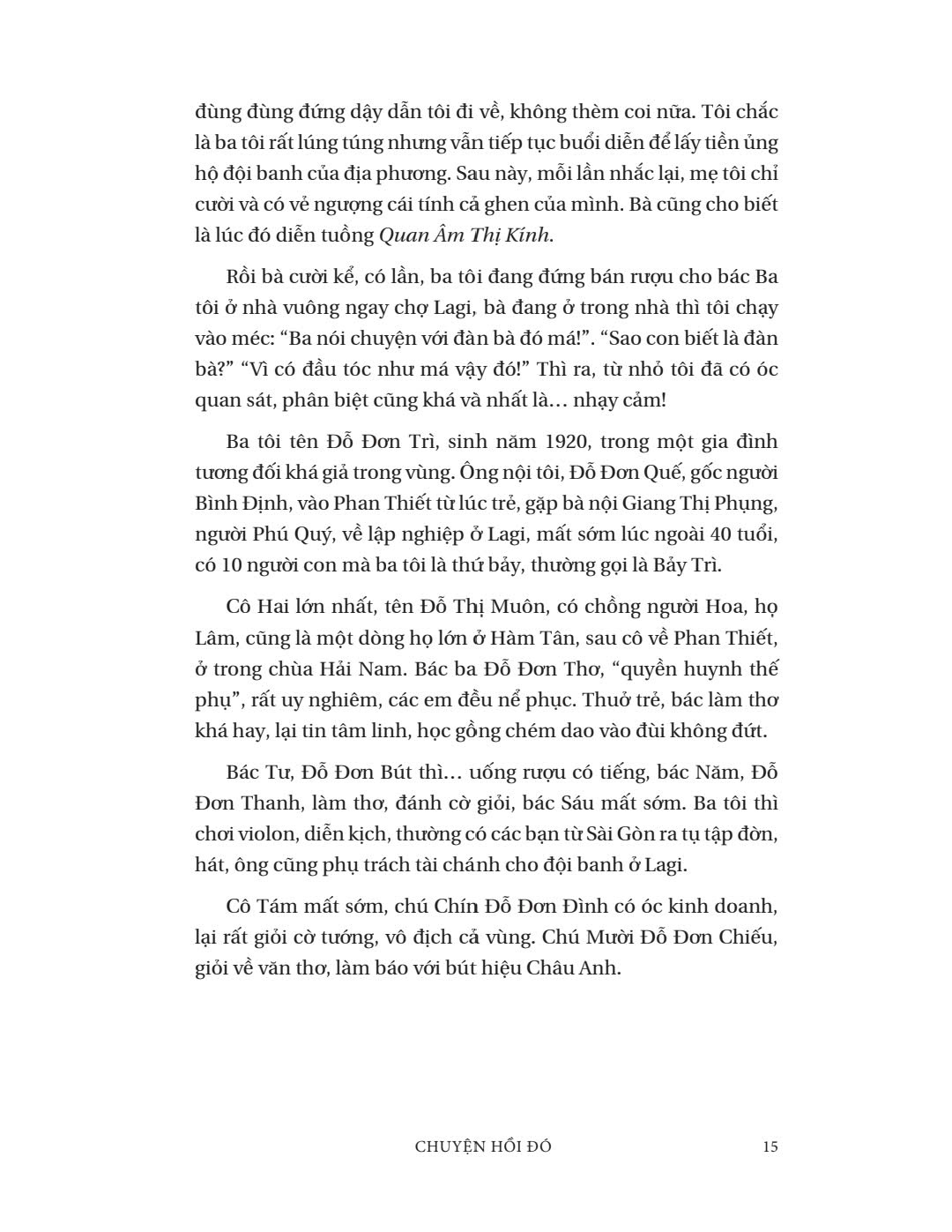 Tác giả - Bác sĩ Đỗ Hồng Ngọc một lần nữa gửi đến độc giả Phanbook tác phẩm đậm chất mộc mạc và sâu lắng. Không phải hồi ký, "Chuyện hồi đó" là tuyển tập những câu chuyện xưa, cũ nhưng cũng đầy kỷ niệm gắn liền với con đường sự nghiệp bác sĩ, văn sĩ, thi sĩ của tác giả. Qua những trang sách "Chuyện hồi đó", độc giả có thể tìm thấy những hình ảnh và câu chuyện từ thuở thiếu thời của tác giả, hay lần theo những cột mốc đã đưa tác giả bén duyên với văn học, y học, Phật học và thiền định. Cuốn sách tập hợp tất cả những câu chuyện mà tác giả Đỗ Hồng Ngọc muốn ôn lại kỷ niệm cùng độc giả - những người đã đồng hành từ trang sách đến những bài blog cá nhân. Và hơn hết, cuốn sách cũng là món quà mà tác giả muốn dành tặng cho chính mình.