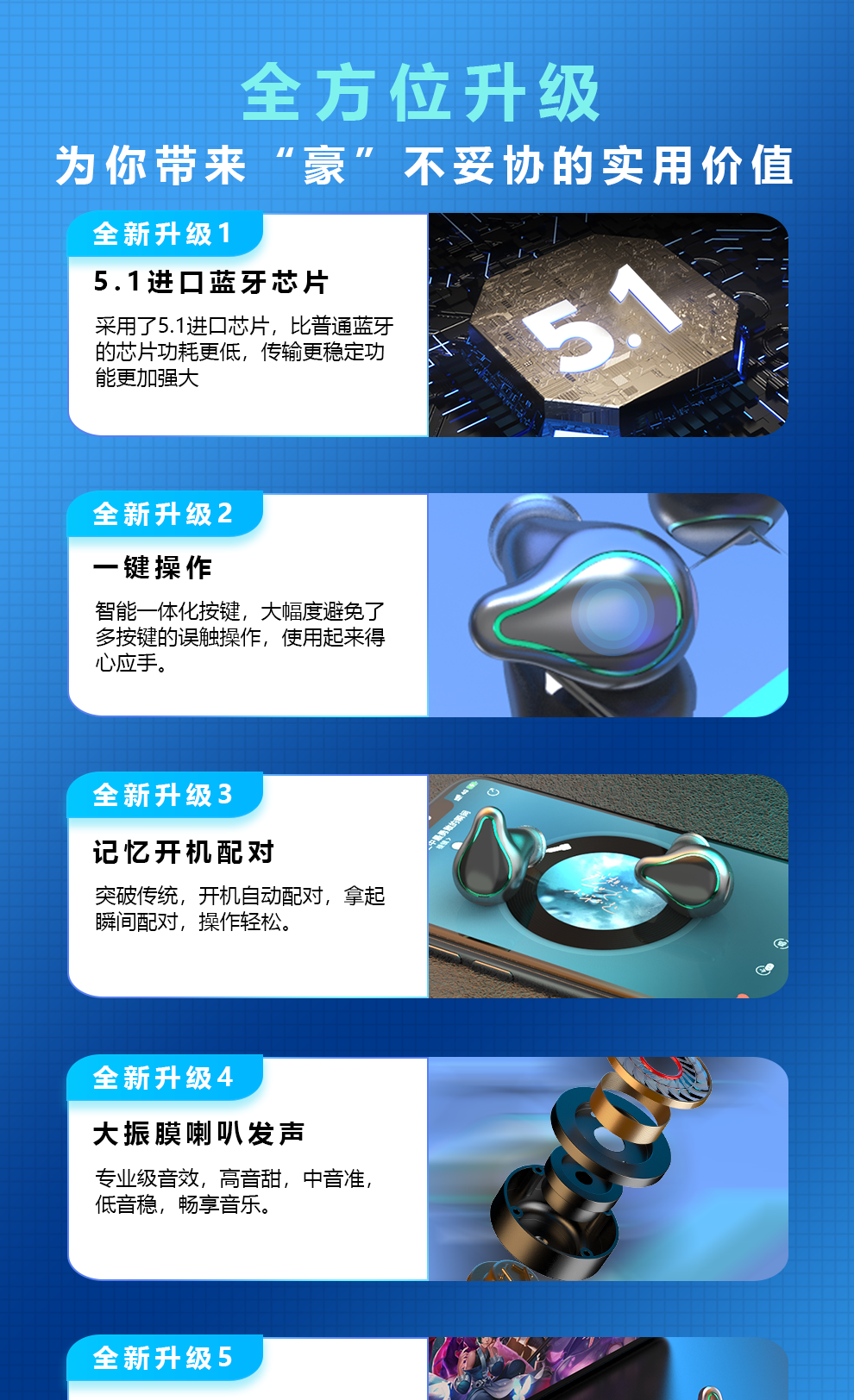 ✨CINCATDY Tai Nghe Bluetooth Earbuds Single Side Wireless Earphone Handsfree Stereo Headset 2021 TWS Earbud with Microphone Waterproof Touch Earbud
