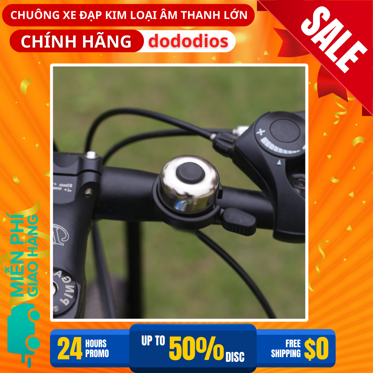 Còi chuông xe đạp thể thao âm thanh vang lớn bằng kim loại phù hợp mọi dòng xe tiện dụng - Hàng chính hãng dododios