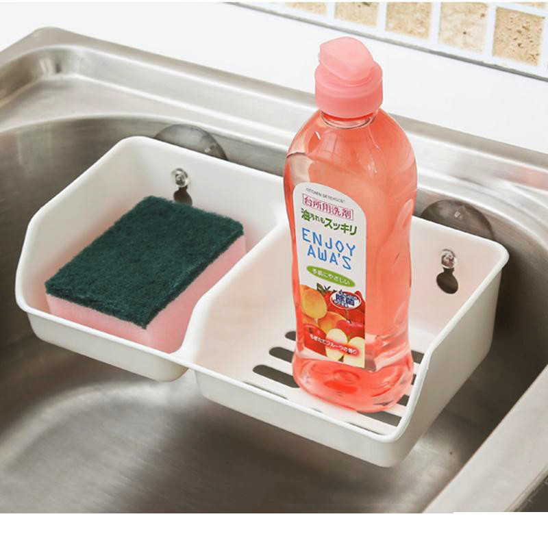 Combo 01 Giá đựng mút rửa chén bát 2 ngăn Sanada có núm hít chân không + 01 Set 05 miếng mút rửa chén bát Inomata - Nội địa Nhật: