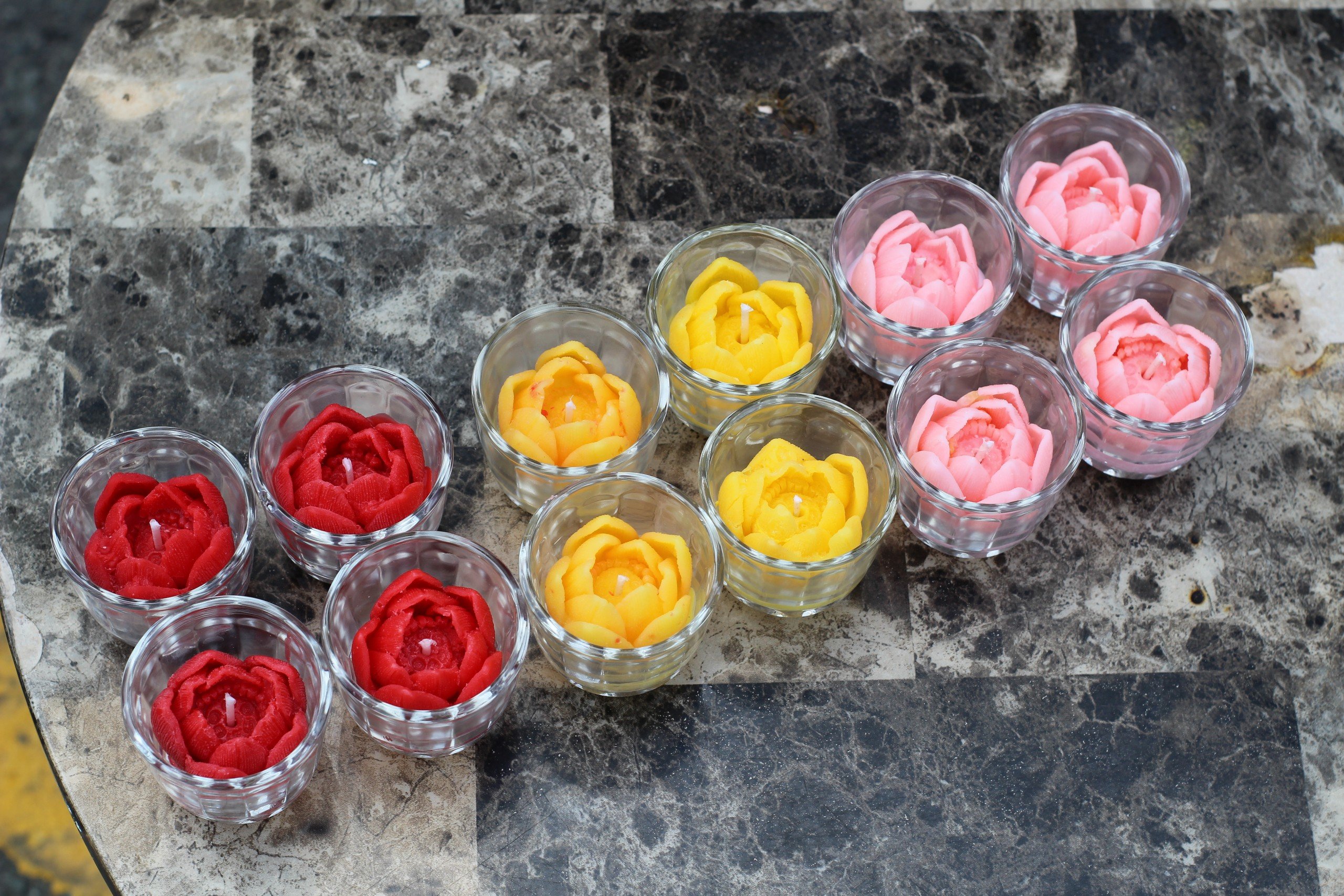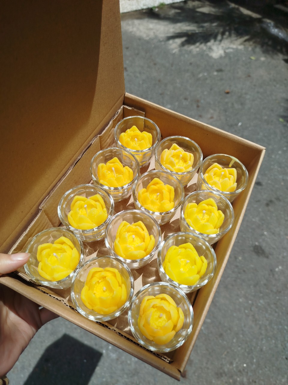 Nến hoa sen, với hình dáng giống như những cánh hoa sen nở rộ, mang lại cảm giác thanh khiết và trang nghiêm, đồng thời thể hiện sự kính trọng và lòng thành kính của bạn đối với những đấng linh thiêng.