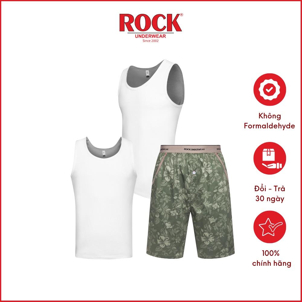 ✨Combo 2 áo thun 3 lỗ không đường may vải cotton 100% ROCK 5076 + 1 quần Short nam 5047 mạnh mẽ cá tính mặc nhà, tập gym
