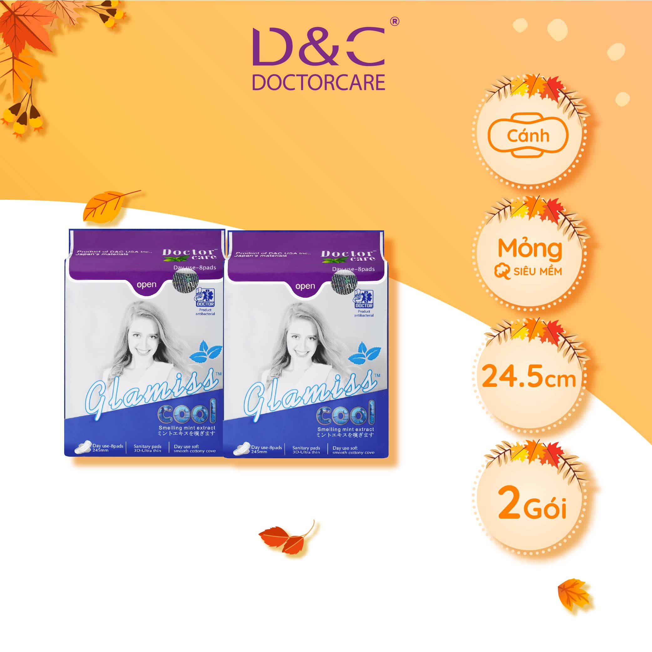 • Tên sản phẩm: Băng vệ sinh thảo dược Glamiss Cool ban ngày.