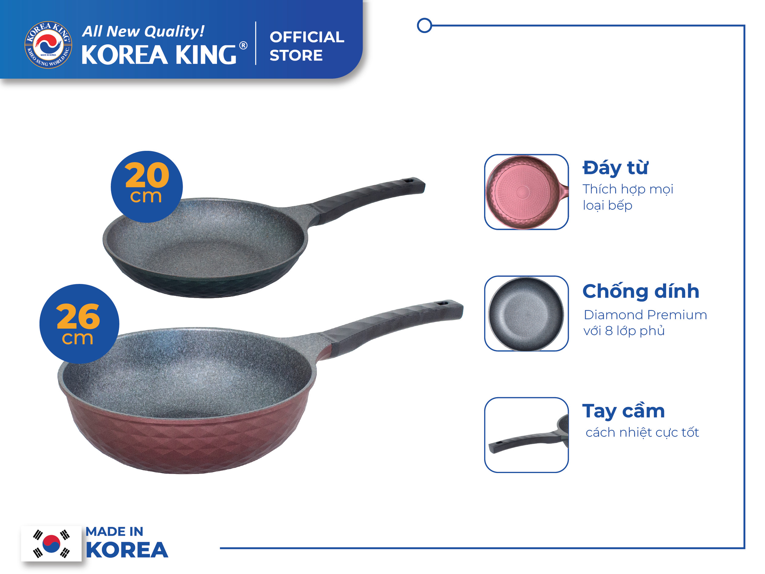 Chảo chống dính thương hiệu Korea King là món quà thiết thực cho các bà nội trợ, giúp việc nấu nướng thuận lợi và có nhiều lựa chọn hơn, phù hợp với mọi không gian