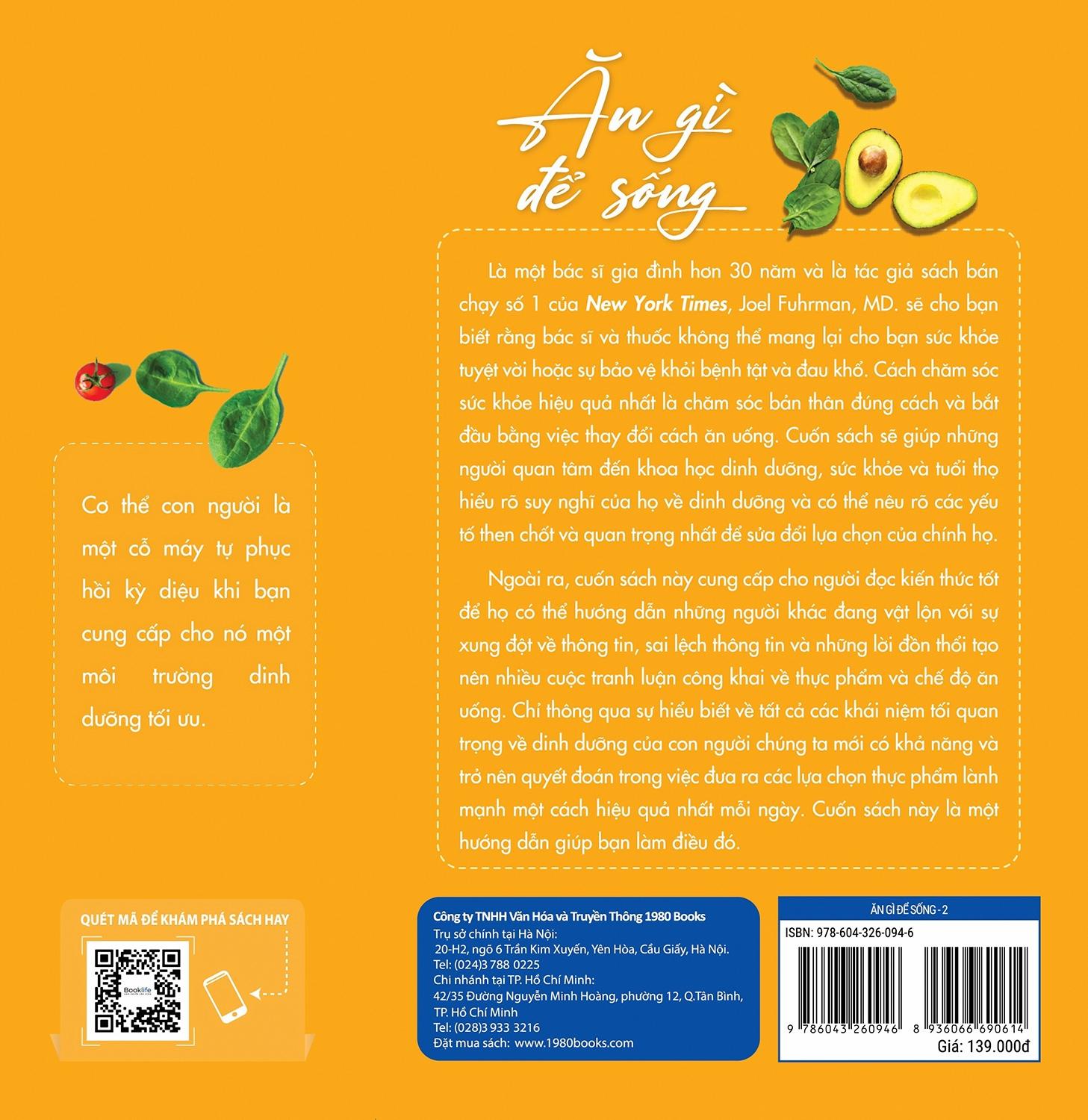 Là một bác sĩ gia đình hơn 30 năm và là tác giả sách bán chạy số 1 của New York Times, Joel Fuhrman, MD sẽ cho bạn biết rằng bác sĩ và thuốc không thể mang lại cho bạn sức khỏe tuyệt vời hoặc sự bảo vệ khỏi bệnh tật và đau khổ. Cách chăm sóc sức khỏe hiệu quả nhất là chăm sóc bản thân đúng cách và bắt đầu bằng việc thay đổi cách ăn uống. Cuốn sách sẽ giúp những người quan tâm đến khoa học dinh dưỡng, sức khỏe và tuổi thọ hiểu rõ suy nghĩ của họ về dinh dưỡng và có thể nêu rõ các yếu tố then chốt và quan trọng nhất để sửa đổi lựa chọn của chính họ. Ăn gì để sống được nghiên cứu bằng lòng trắc ẩn, sự hiểu biết và cái nhìn sâu sắc về tất cả các nghiên cứu khoa học mới nhất và các lý thuyết về chế độ ăn uống dành cho người đọc. Càng tuân thủ nguyên tắc cơ bản của chế độ ăn kiêng với sự tuyệt đối về vi chất dinh dưỡng, đồng thời điều chỉnh lựa chọn thực phẩm cho phù hợp với những hạn chế của cá nhân, càng có thể dự đoán được việc làm chậm quá trình lão hóa và chống lại căn bệnh ung thư. Bạn sẽ thấy rằng những người – ốm yếu hay khỏe mạnh, thừa cân hay mảnh mai, trẻ hay già – đều có thể hưởng lợi từ kế hoạch ăn kiêng này. Nó tạo ra môi trường cần thiết để cơ thể chúng ta phát triển và trải nghiệm những điều tương tự như một điều kỳ diệu trong thế giới hiện đại của chúng ta: một cuộc sống lâu dài không mắc các bệnh như bệnh tim, đột quỵ, sa sút trí tuệ và thậm chí là ung thư. Nếu bạn nghĩ rằng áp dụng một chế độ ăn uống lành mạnh đồng nghĩa với việc bạn phải từ bỏ thú vui ăn uống, thì điều này đơn giản là không hề đúng. Đúng vậy, cần có thời gian để học một cách mới để nấu và chế biến thực phẩm, và đúng vậy, cần thời gian để sở thích thay đổi và vị giác trở nên nhạy cảm hơn với thực phẩm ít muối và đường. Nhưng nếu bạn tiếp tục với kế hoạch này, bạn sẽ thấy rằng vị giác và khứu giác của bạn thực sự trở nên mạnh mẽ hơn và điều chỉnh sao cho bạn thích những món ăn lành mạnh hơn. Bạn sẽ rất hào hứng với những thực đơn và công thức nấu ăn tuyệt vời mà bạn tìm thấy trong cuốn sách này. Bạn sẽ sớm phát hiện ra rằng không chỉ bạn thích cách ăn này – mà bạn sẽ chuộng nó hơn. Ăn gì để sống cung cấp cho người đọc kiến thức tốt để họ có thể hướng dẫn những người khác đang vật lộn với sự xung đột về thông tin, sai lệch thông tin và những lời đồn thổi tạo nên nhiều cuộc tranh luận công khai về thực phẩm và chế độ ăn uống. Chỉ thông qua sự hiểu biết về tất cả các khái niệm tối quan trọng về dinh dưỡng của con người, chúng ta mới có khả năng và trở nên quyết đoán trong việc đưa ra các lựa chọn thực phẩm lành mạnh một cách hiệu quả nhất mỗi ngày. Cuốn sách này dành cho bất kì ai hứng thú học hỏi về mối liên quan giữa khoa học dinh dưỡng, chế độ ăn thời hiện đại và sức khỏe hoặc những ai đang tìm kiếm lời khuyên thực tế về việc giảm cân để đạt được sức khỏe tốt nhất. Thông tin trong những trang sách này sẽ thay đổi cuộc đời bạn. Quyết định theo đuổi sức khỏe vượt trội của bạn sẽ bắt đầu một trong những hành trình quan trọng nhất mà bạn có thể thực hiện. Về tác giả: Joel Fuhrman M.D. Một nhà vật lí học người Mỹ và là nhà nghiên cứu về dinh dưỡng. Fuhrman có chuyên môn về việc sử dụng kiến thức dinh dưỡng và tự nhiên để ngăn chặn những căn bệnh nguy hiểm. Ông đã thu thập nhiều tài liệu khoa học về các chất và nhiều trường hợp điển hình chứng minh tính hiệu quả của những khuyến nghị mình đưa ra.