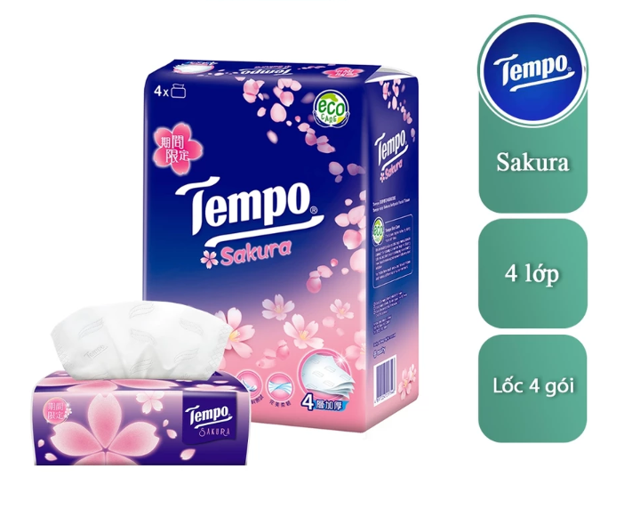 - Khăn Giấy Tempo được cấu thành từ bột giấy và hương liệu, không chứa hóa chất độc hại, tuyệt đối an toàn cho người sử dụng. - Sản phẩm có thể dùng lau mặt hoặc