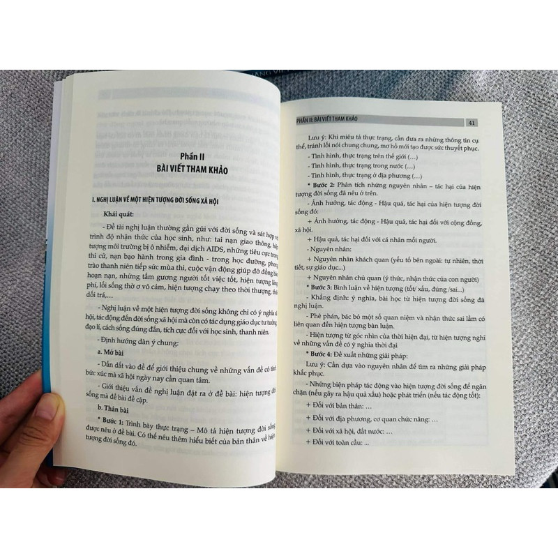 Mua tại TiktokKỹ năng viết bài văn nghị luận xã hội Kể từ năm 20222-2023, chúng ta đã chính thức áp dụng bộ sách giáo khoa mới vào chương trình dạy học các cấp. Việc tiếp cận với điều mới chưa bao giờ dễ dàng, đặc biệt cùng một lúc có 3 bộ sách: Kết nối tri thức với cuộc sống, Cánh Diều và Chân trời sáng tạo. Cuốn sách KỸ NĂNG VIẾT BÀI VĂN NGHỊ LUẬN XÃ HỘI sẽ định hướng cho thầy cô và các em kỹ năng triển khai bài văn nghị luận xã hội đúng và hay, đồng thời cung cấp các bài viết tham khảo, hệ thống các dẫn chứng vận dụng trong bài nghị luận xã hội. Cuốn sách bám sát đề minh họa môn Ngữ Văn của Bộ Giáo dục và Đào tạo công bố vào tháng 12 năm 2023, đáp ứng tiêu chí: cập nhật, chi tiết và sáng tạo. —————————- Cuốn sác bao gồm ba phần: