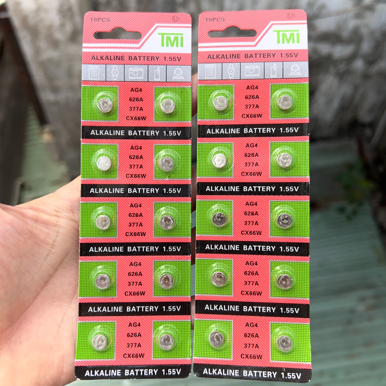 1 Vỉ 10 viên pin đồng hồ phổ thông AG4 tương đương 377 - LR626 - SR626 - CX66W - 177
