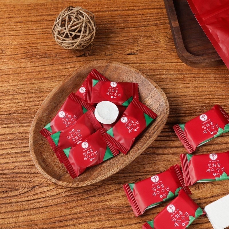 Khăn nén vải cotton dày dặn dùng 1 lần tiện lợi cho Du lịch Khăn nén Hàn Quốc làm từ sợi bông tự nhiên dai, mềm mịn, không mùi không gây tổn thương da. 1
