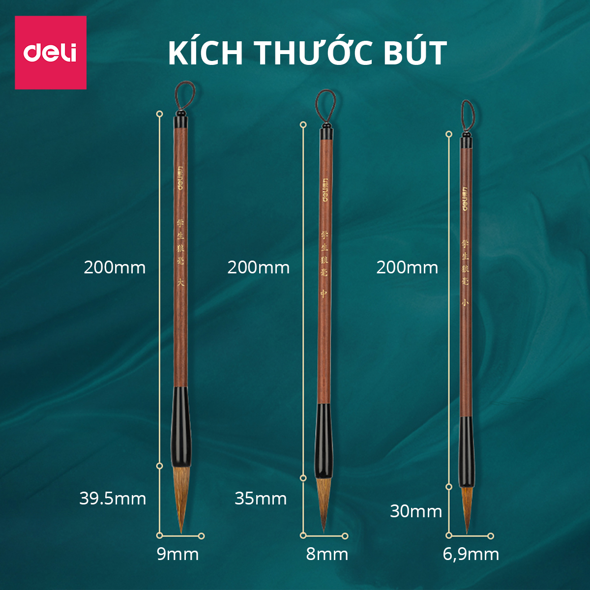 COMBO 3 BÚT LÔNG SÓI VIẾT THƯ PHÁP DELI TÍNH NĂNG SẢN PHẨM: ️Bút lông Deli chuyên viết thư pháp, chữ Hán, vẽ tranh ️Nét bút mượt mà với đủ 3 kích thước đầu