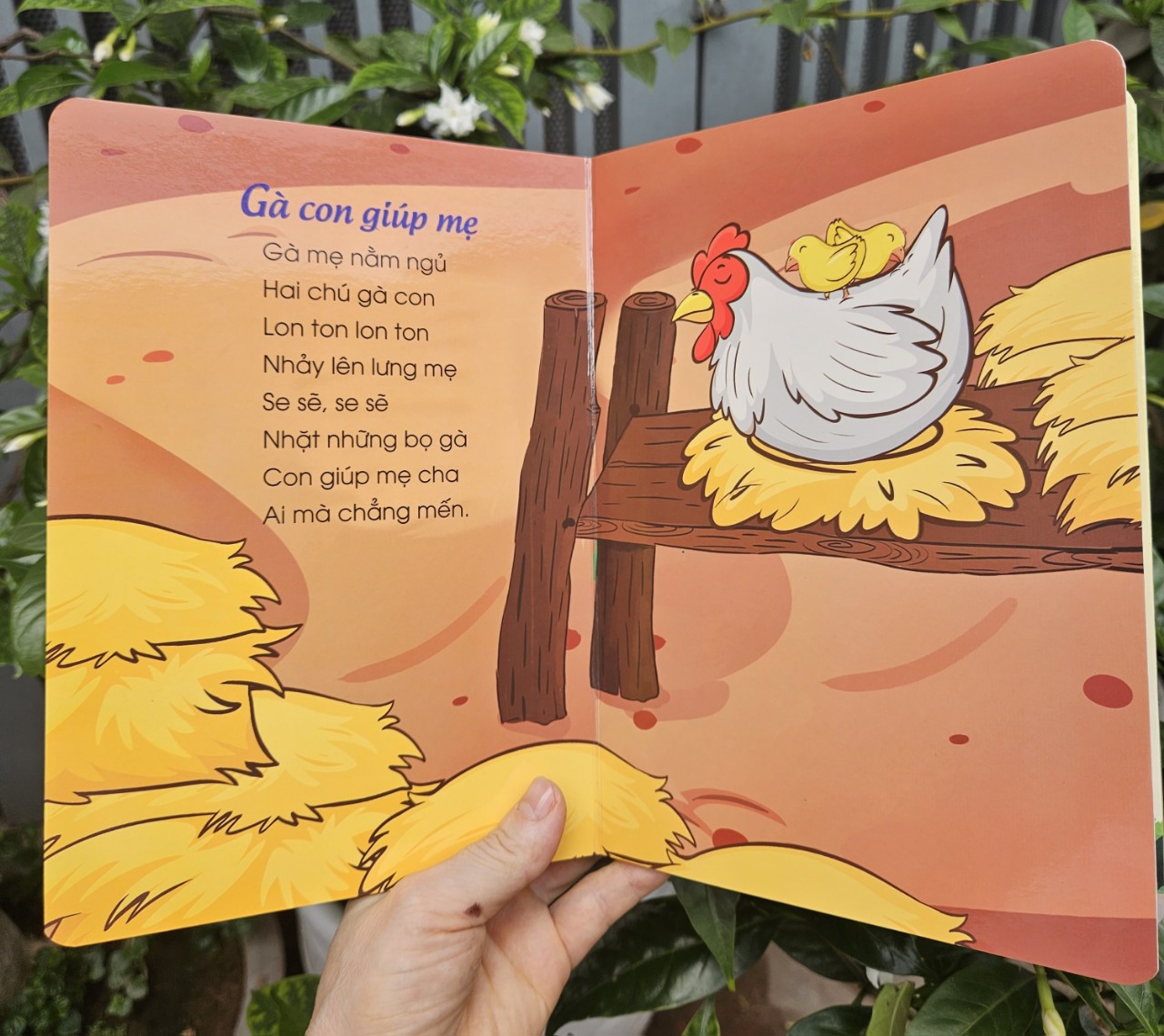 Cuốn đồng dao được minh họa bằng các hình vẽ ngộ nghĩnh, đáng yêu và kèm theo từ vựng bên dưới mỗi hình, không chỉ giúp bé phát triển ngôn ngữ mà còn giúp bé nhận biết về thế giới xung quanh.
