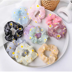 Hàng về mỗi ngày Shop sẽ cập Nhật kho liên tục nhé. Không lo hết hàng nhé Tên, mã: cột tóc vải Scrunchies voan lưới hoa cúc Số lượng: 1 cột Màu sắc: nhiều màu.