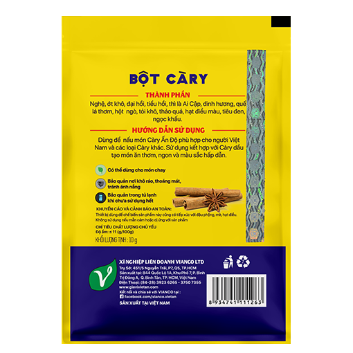VIANCO - GIA VỊ VIỆT ẤN 63 NĂM CHUẨN VỊ NGON BAO THẾ HỆ Gia vị Việt Ấn trứ danh với nhiều sản phẩm gia vị đa dạng: Cà ry Việt Ấn hiệu Đầu bếp Ấn Độ, Ngũ vị hương Việt Ấn hiệu Con Nai, Gia vị tiện lợi ViancoFoods, và nhiều gia vị đơn chất cùng hàng nông sản thuần tự nhiê tốt cho sức khỏe và vẹn tròn bữa ăn ngon cho gia đình bạn.