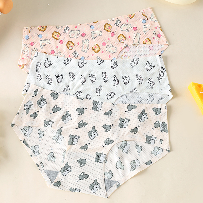 - Chi tiết sản phẩm Chất liệu su thông hơi cao cấp Pha nylon & spandex co giãn 360°, mềm mịn, thấm hút mồ hôi và thông thoáng nhờ các lỗ khí nhỏ li ti. Thiết kế seamless không đường may Công nghệ dập nhiệt liền mảnh, phẳng mịn, hạn chế vết hằn, “mặc như không mặc”. Họa tiết trẻ trung, đáng yêu 5 mẫu in độc đáo gồm mèo Kitty hồng, bé gấu hoạt hình, họa tiết trái tim, chấm bi pastel, họa tiết hoạt hình đa sắc—tăng độ “cute” cho tủ nội y. Form full–coverage Che phủ mông hoàn hảo, cạp vừa phải, ôm gọn mà không siết, phù hợp mặc cùng quần ôm, váy bodycon, quần jean.