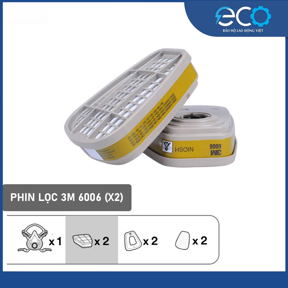 - 2 Phin lọc 3M 6006 – lọc đa khí độc: hơi hữu cơ, vô cơ, amoniac, formaldehyde…