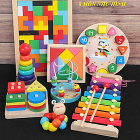 [COMBO SIÊU RẺ] Bộ combo 8 loại đồ chơi gỗ phát triển trí tuệ cho bé, đồ chơi giáo dục sớm