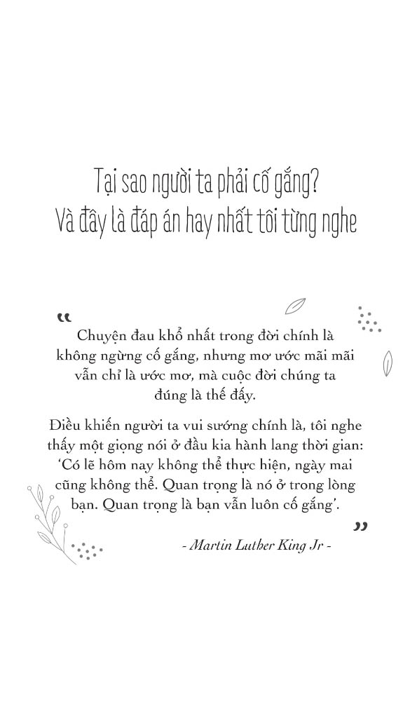 Bạn khát vọng cuộc sống đối xử tử tế với bạn, nhưng kỳ thực, cuộc sống chẳng quan tâm đến bạn đâu, bạn phải cố gắng gấp bội mới có thể đạt được cuộc sống như mong muốn. Nỗ lực đủ lâu, cuộc sống ắt sẽ công bằng.