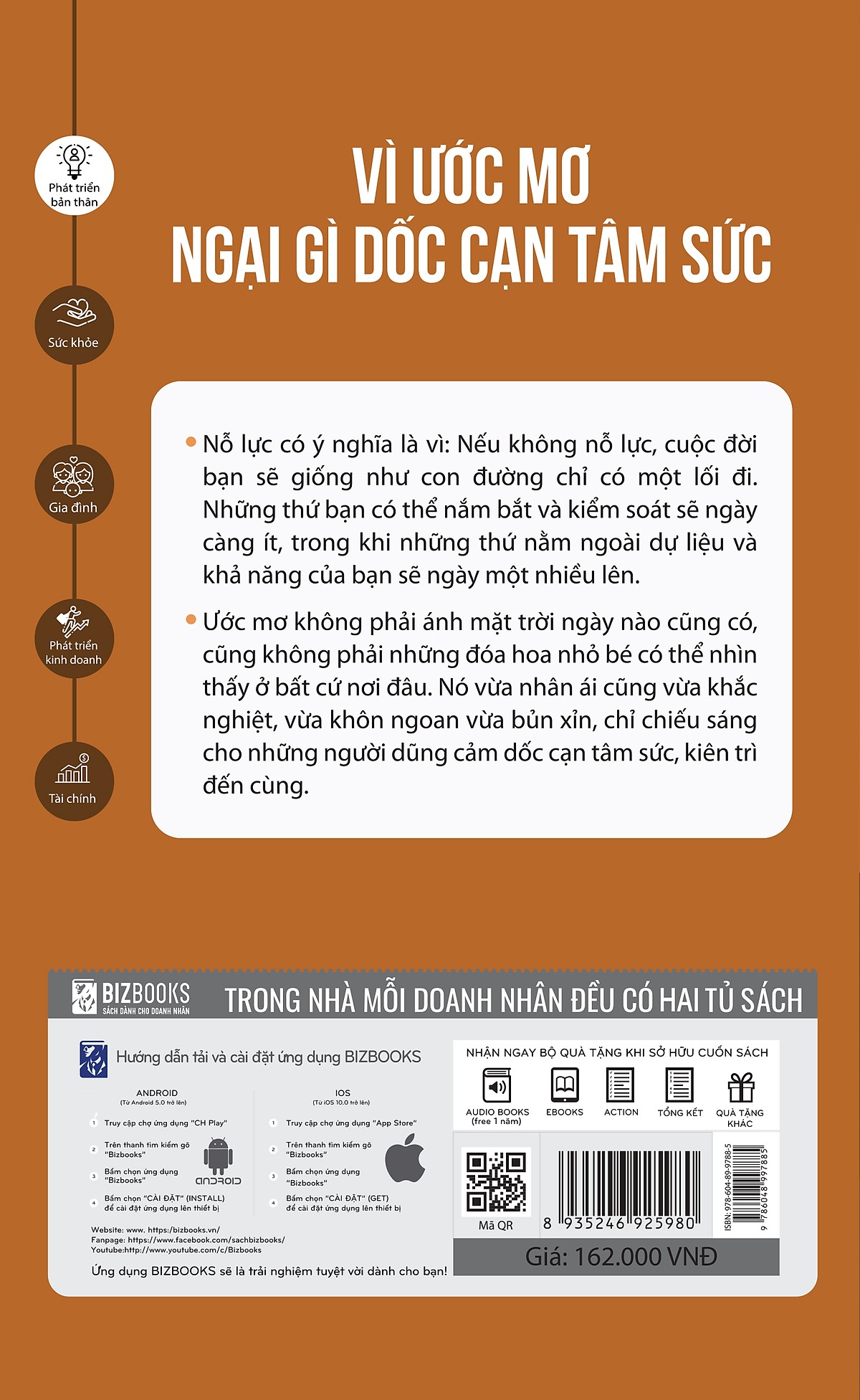 - Khi bạn có tiền trong tay, chỉ có bạn quên mất mình là ai. Nhưng…Khi bạn không có đồng nào, cả thế giới sẽ quên đi bạn là ai. Đó là cuộc sống! Vì cuộc sống quá phũ phàng nên không ai quan tâm đến niềm vui nỗi đau của bạn đâu. Bạn có ước mơ thì cứ làm, có hoài bão hãy cứ thực hiện. Ước mơ không như mặt trời đều mọc mỗi ngày, bạn hãy tận dụng khi còn khỏe – trẻ dốc cạn tâm sức cho nó. Cuốn sách “Vì Ước Mơ Ngại Gì Dốc Cạn Tâm Sức” sẽ giúp bạn thức tỉnh và biết đâu bạn lại tìm ra được ước mơ và theo đuổi nó tới cùng. ####