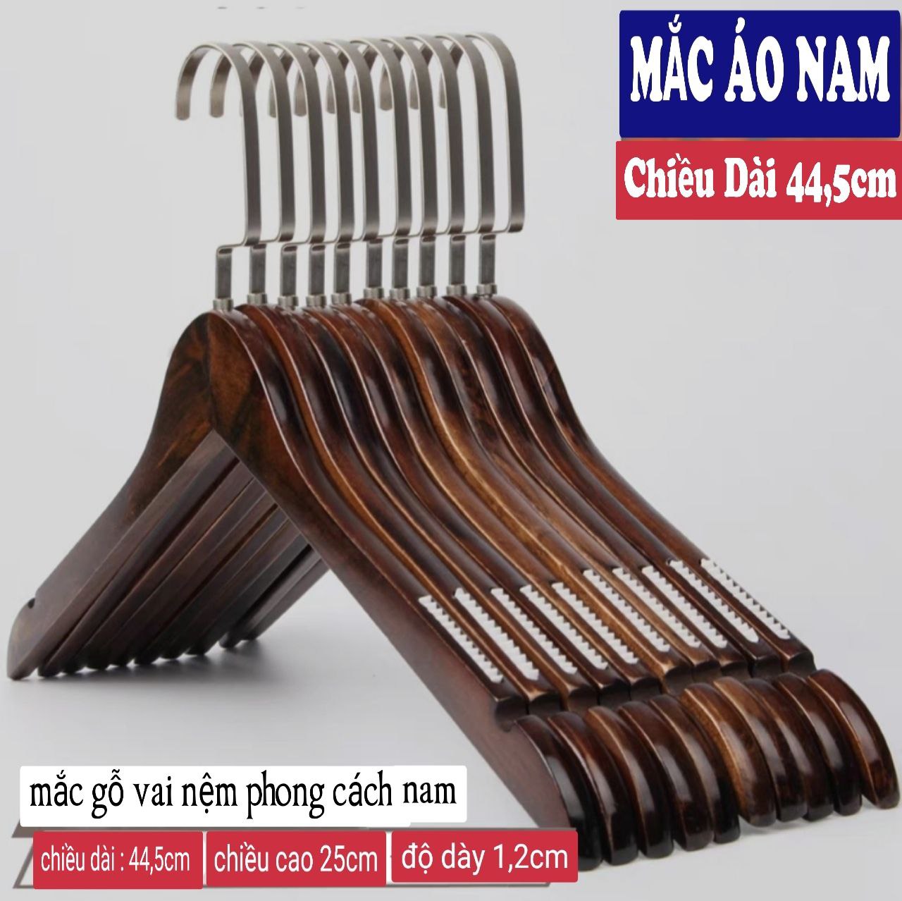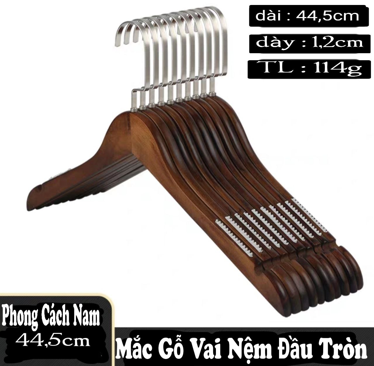 ✨Combo CHỤC móc gỗ đầu tròn treo quần áo móc gỗ có vai nệm nam chống trượt dài 44,5cm