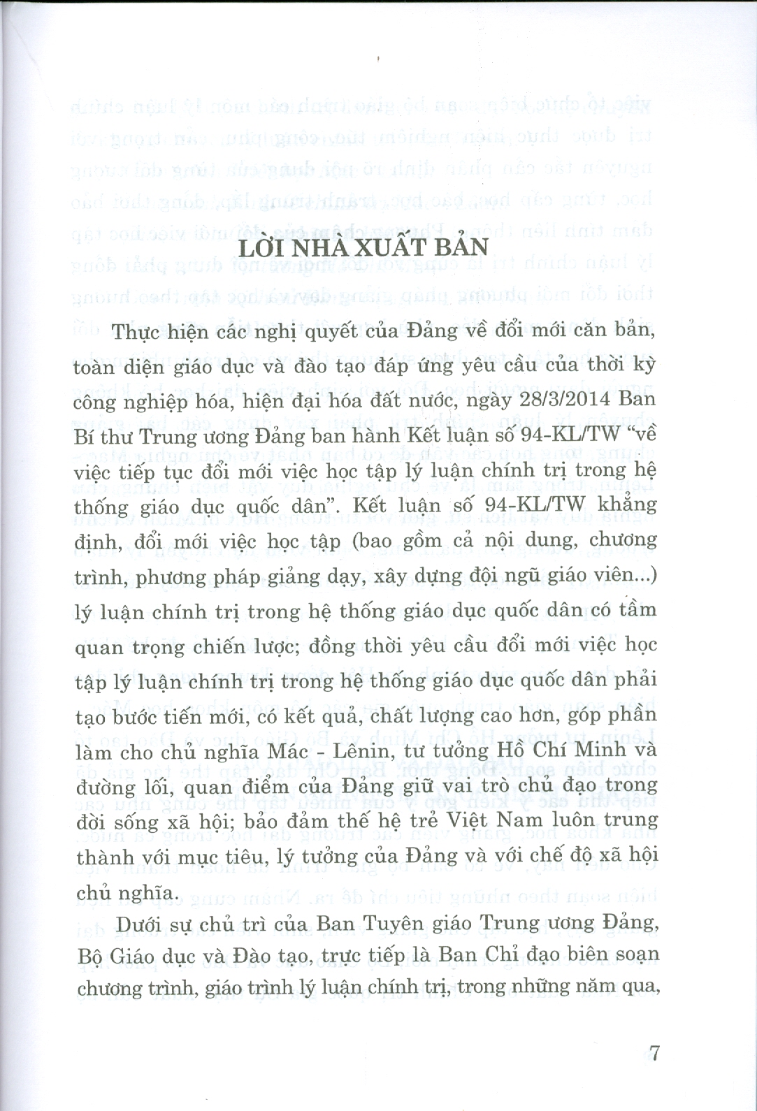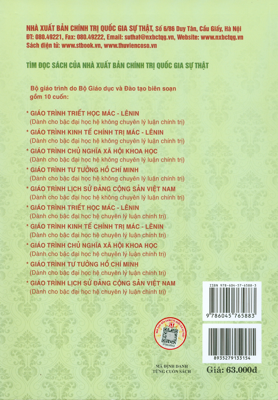 Bộ giáo trình lý luận chính trị gồm 5 cuốn dành cho bậc đại học hệ không chuyên lý luận chính trị. Bộ sách là tài liệu giảng dạy, học tập cho giảng viên, sinh
