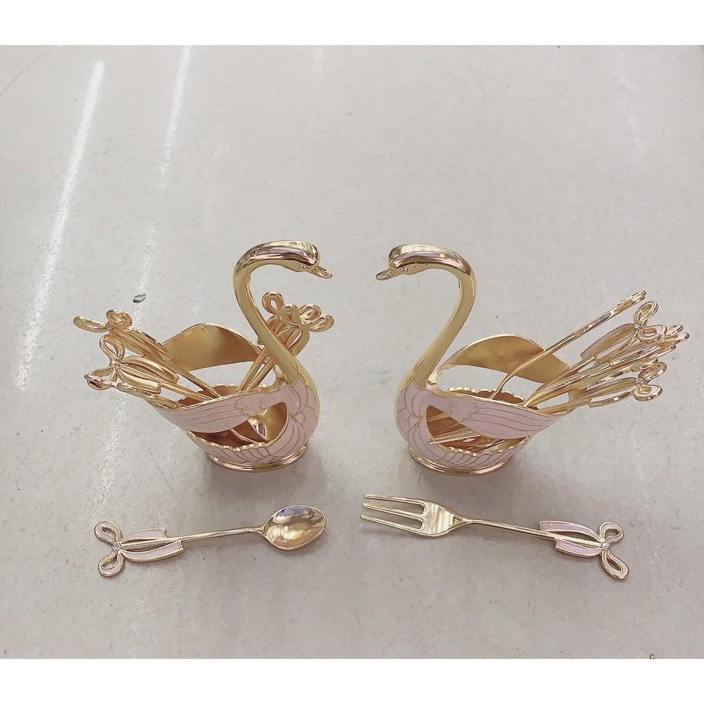 Sản phẩm bao gồm 1 thiên nga đính 2 viên đá Sawaski + 6 thìa hoặc nĩa Chất liệu: Hợp kim Bảo hành màu: 5 năm An toàn sức khỏe