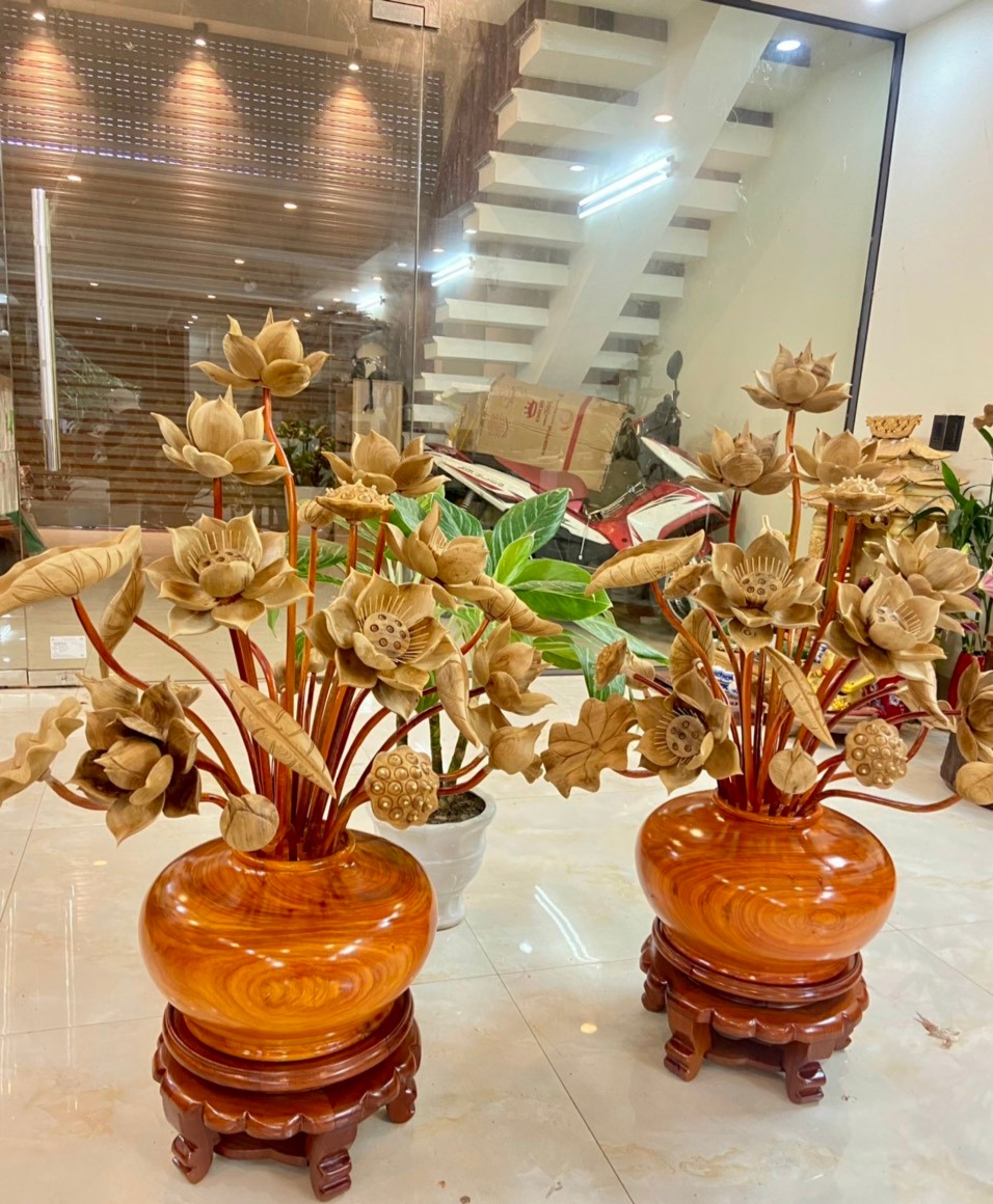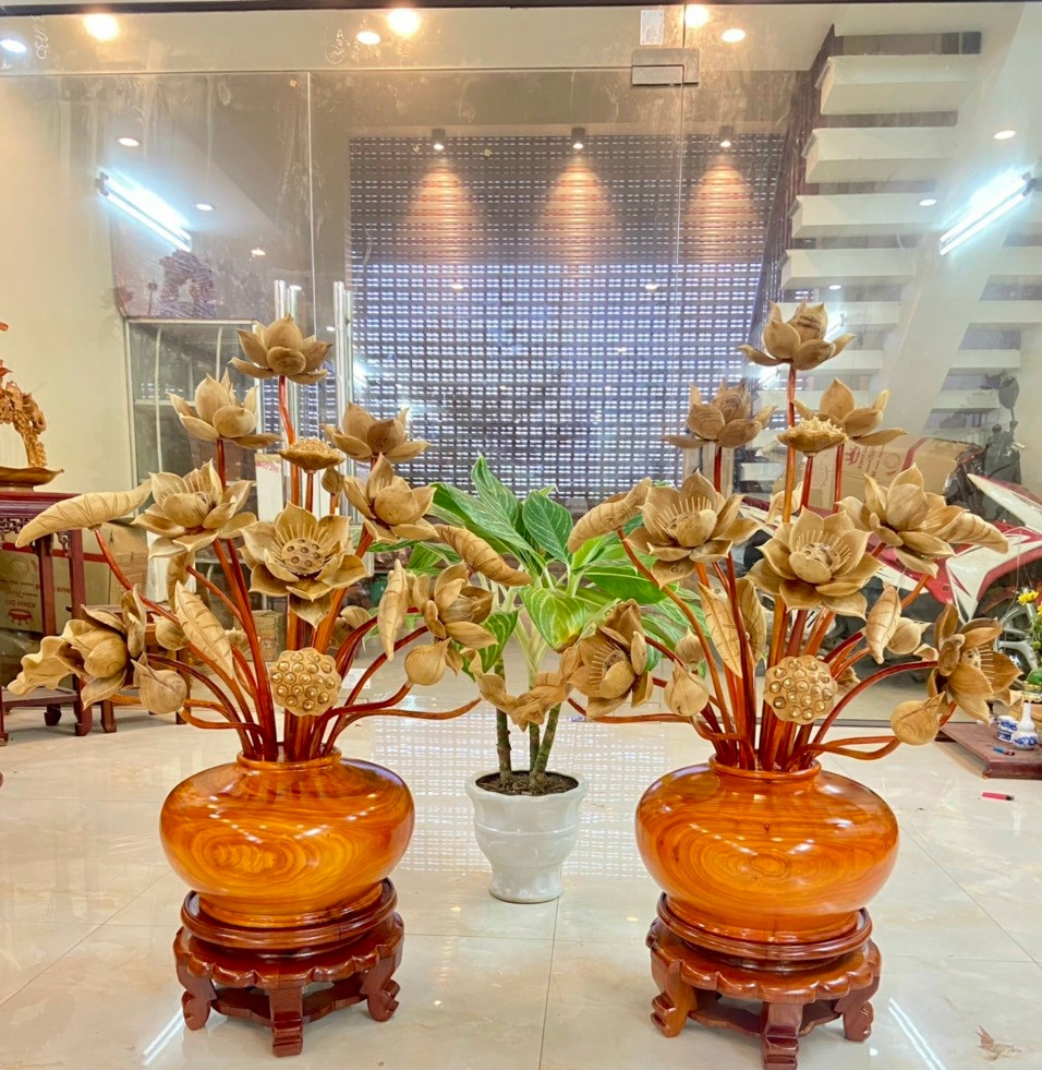 Báo giá 2 bình hoa sen gỗ hương và gỗ Ngọc am thơm nức mũi .