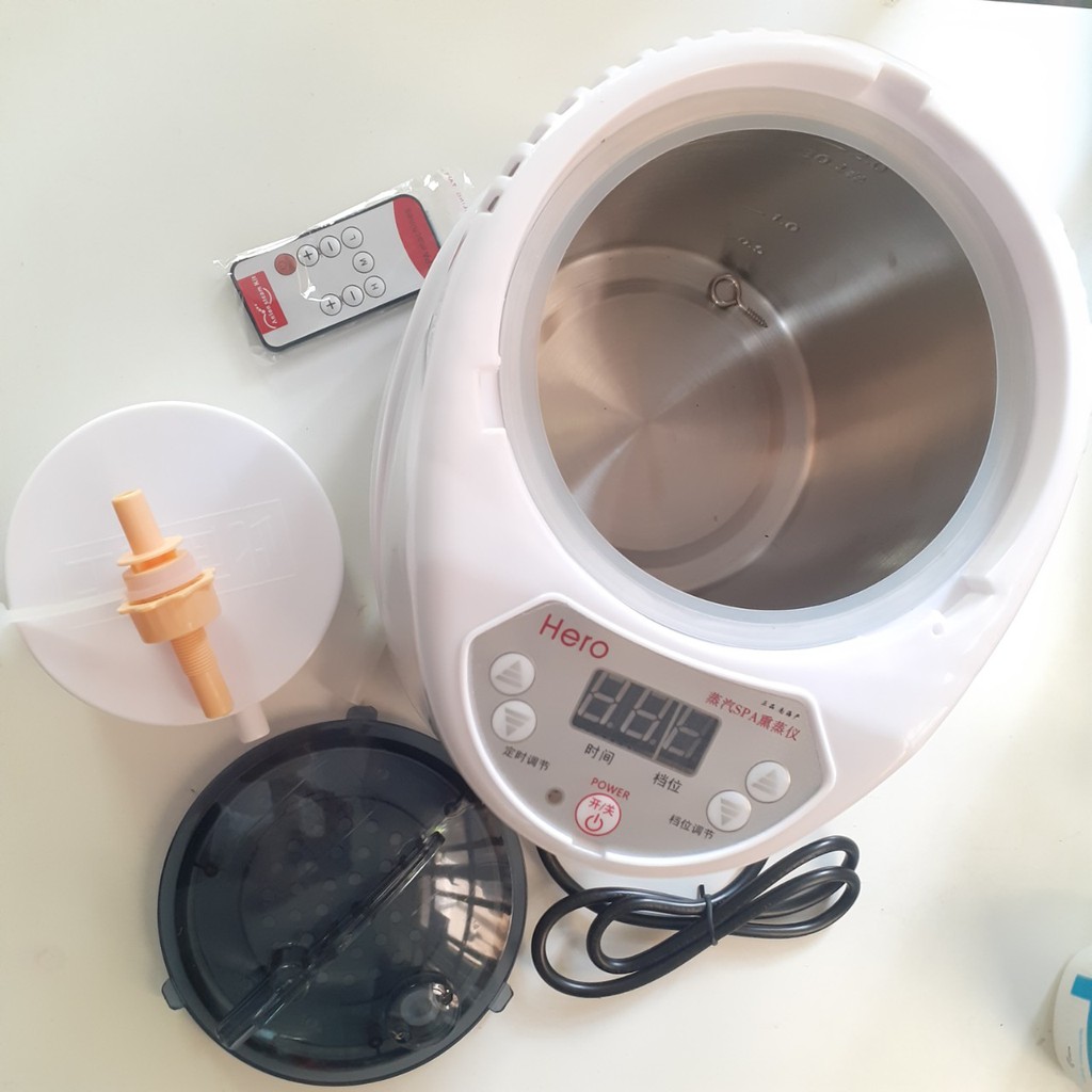 Nồi xông hơi Điện áp nồi tạo hơi(máy xông) : 220V Công suất nồi tạo hơi(máy xông): - Dung tích nồi xông hơi 2 lít ( Công suất 1000w) - Dung tích nồi xông