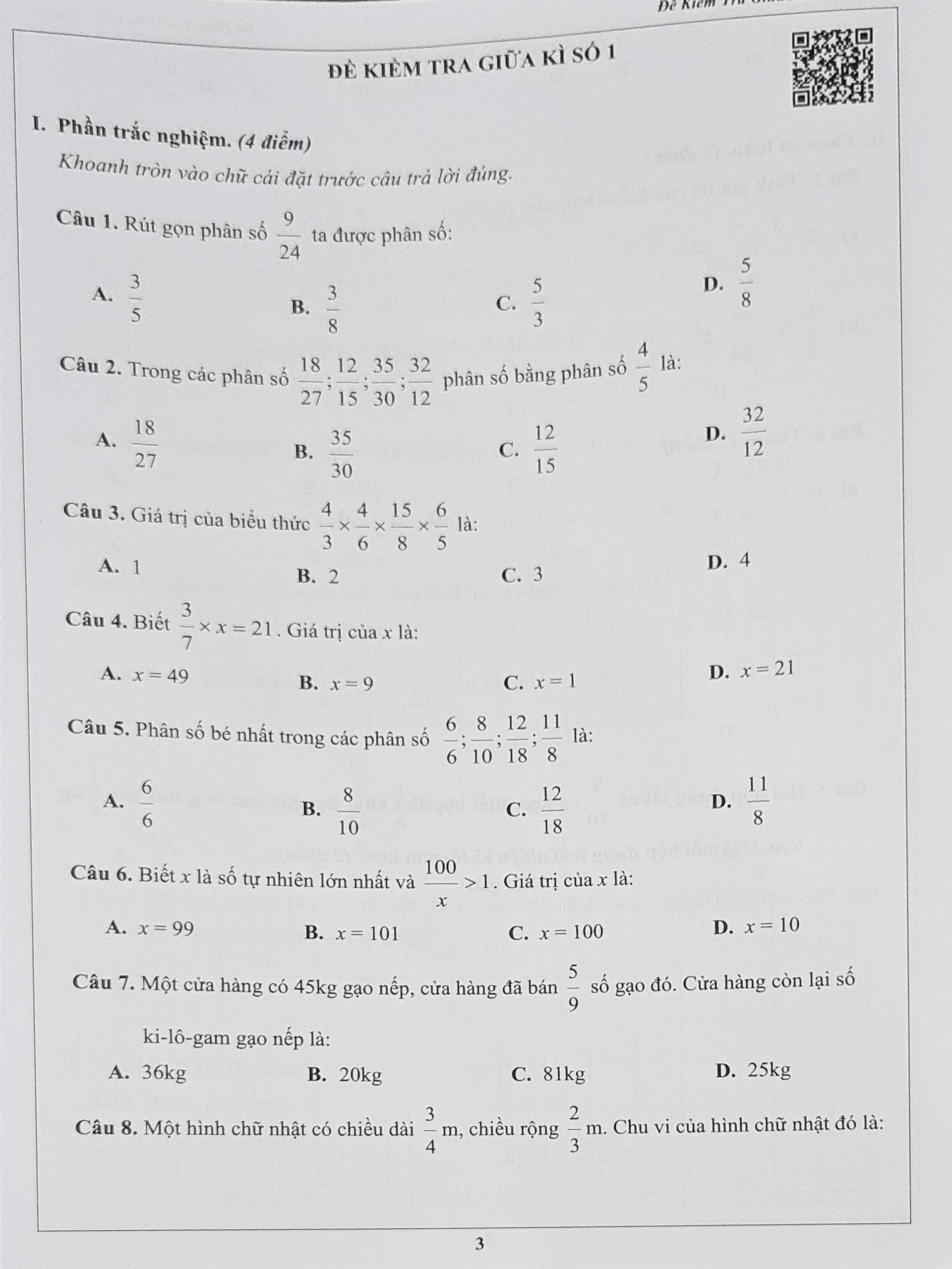 Đề số 1 - Kiểm tra giữa học kì 2 | Toán lớp 4 | Kết Nối | Thầy Nguyễn Văn Quyền