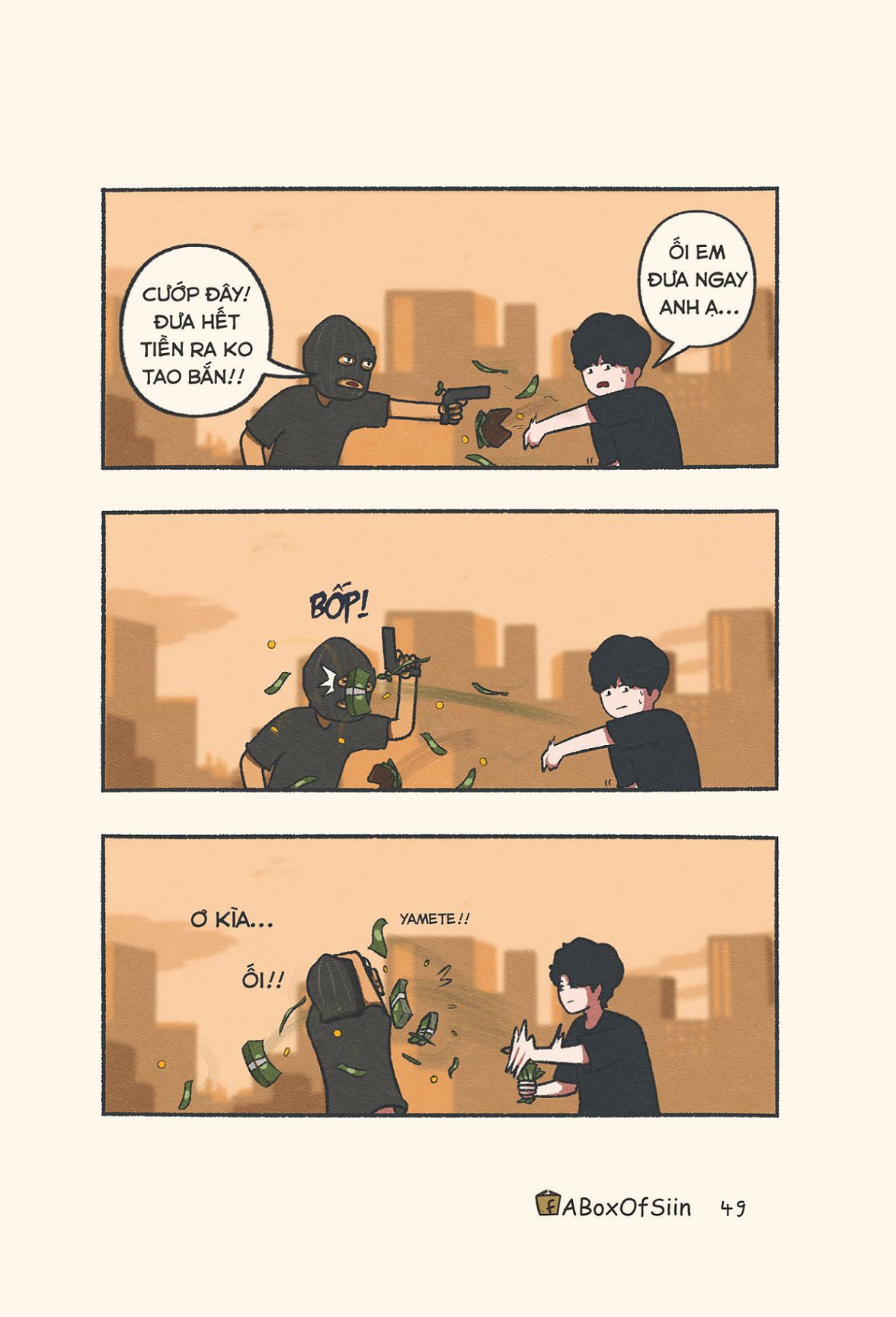 “A Box Of Siin - Hộp truyện siêu ngắn” cuốn truyện tranh đầu tay tổng hợp những câu chuyện đời thường thông qua góc nhìn vô cùng hài hước và độc đáo của Siin. Từ chuyện thả thính, yêu đương đến chuyện tiền nong, bạn bè mà bất cứ ai cũng sẽ gặp phải.