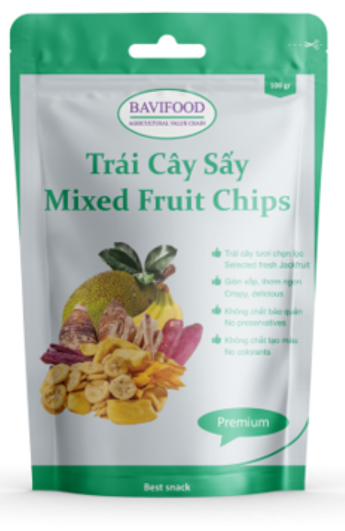Mua tại TiktokMÔ TẢ SẢN PHẨM Tên sản phẩm: Trái cây sấy chân không - BAVI. Thương hiệu: BAVIFOOD Dòng sản phẩm: Cao cấp - Premium. Phương pháp sấy: Sấy chân không. Thành phần: Mít chín, Chuối chín, Khoai lang vàng, Khoai lang tím, Khoai môn và Dầu thực vật. Đặc tính: Sản phẩm giòn xốp mà vẫn giữ được hương vị thơm ngon, vị ngọt thanh tự nhiên …, màu sắc tươi nguyên và bảo toàn được giá trị dinh dưỡng. Đóng gói: