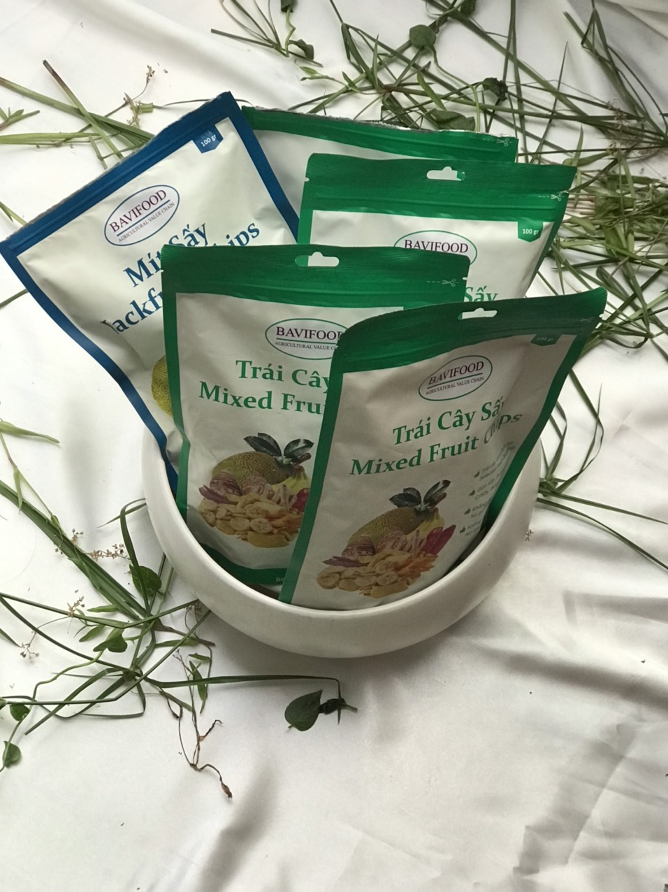 ✨[ Combo: thùng = 10 gói x 100 grs/gói ] 05 Gói Mít Sấy và 05 Gói Trái Cây Sấy Chân Không (Mixed Fruit Chips), Giòn Xốp Tự Nhiên – BAVIFOOD, Khối Lượng: 1 kg (thùng = 10 gói x 100 grs/gói) – Premium