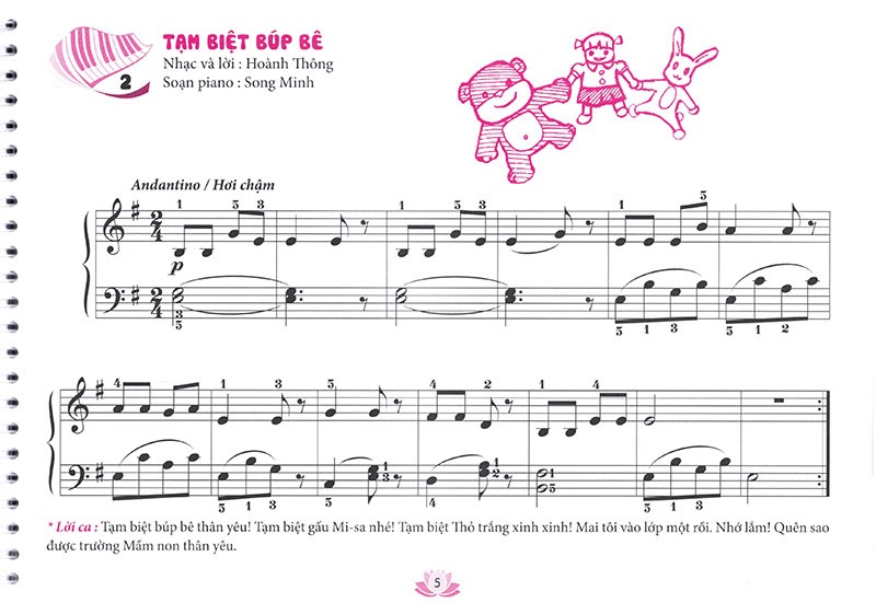 Bộ sách (2 phần) gồm những bài tập dành cho những lứa tuổi mầm non, tiểu học nói riêng và những người học mới piano nói chung. Các bài hát trong sách chủ yếu dựa