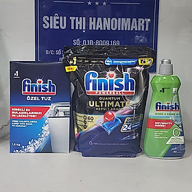 Combo Muối rửa bát Finish 1,5kg+ Viên rửa bát finish All in 1 100 viên+ Nước làm bóng Finish 750ml ( Hàng nhập khẩu ) Combo: Viên rửa Finish All-in-1 100 viên + Muối Finish