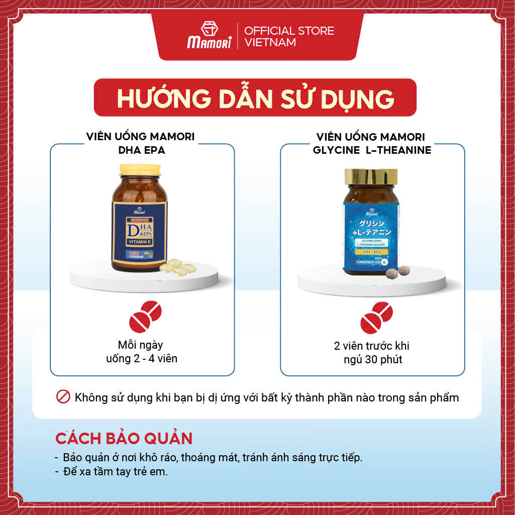 ✨Combo Viên Uống Mamori DHA-EPA và Glycine L-theanine Giúp Tăng Cường Trí Nhớ, Cải Thiện Giấc Ngủ sâu, thư giãn