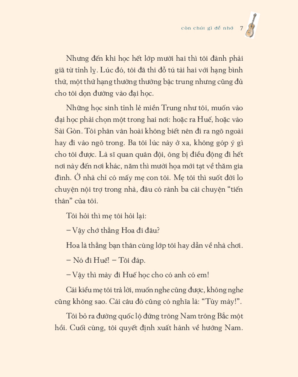 Mua tại TiktokCòn Chút Gì Để Nhớ (Phiên Bản Màu Đặc Biệt) Đó là những kỷ niệm thời đi học của Chương, lúc mới bước chân vào Sài Gòn và làm quen với cuộc sống đô thị. Là những mối quan hệ bạn bè tưởng chừng hời hợt thoảng qua nhưng gắn bó suốt cuộc đời. Cuộc sống đầy biến động đã xô dạt mỗi người mỗi nơi, nhưng trải qua hàng mấy chục năm, những kỷ niệm ấy vẫn luôn níu kéo Chương về với một thời để nhớ.