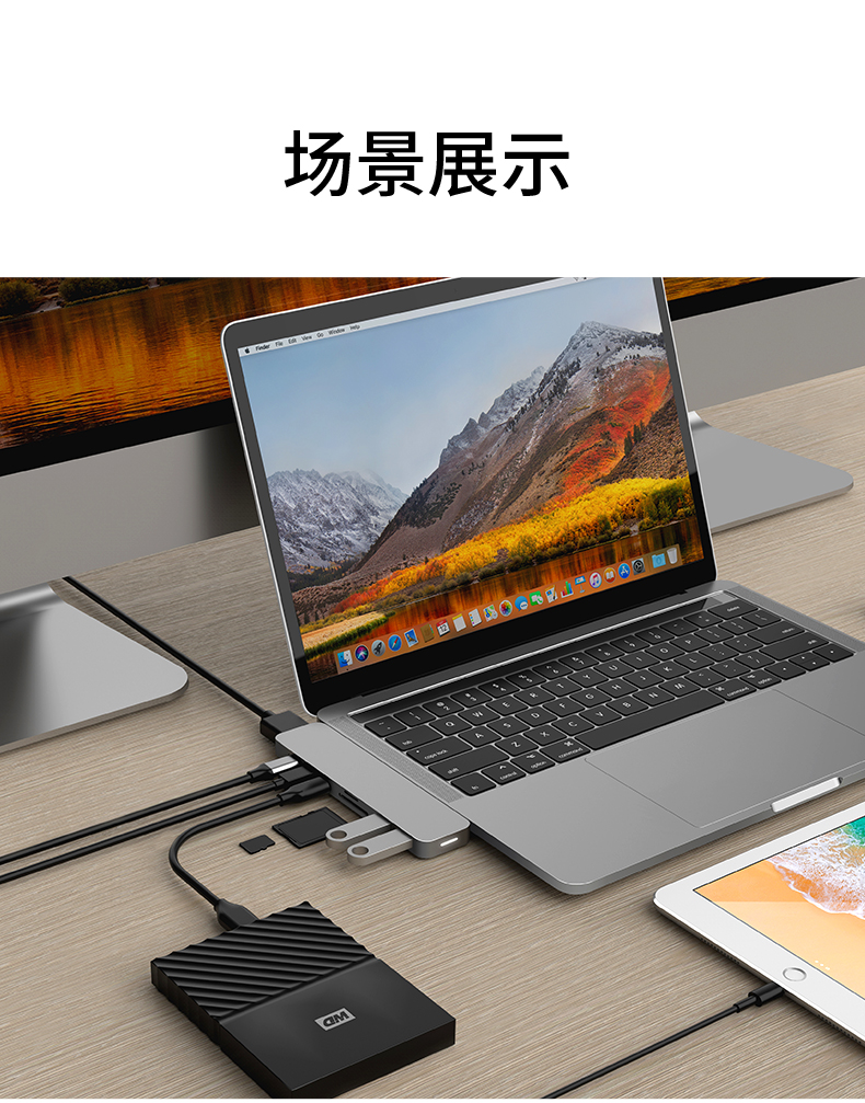 1. Features: Extend more connections from USB Type-c 2. Input: USB Type-C positive 3. Output: 2*usb-c + RJ45 + HDMI 4K60HZ + PD + SD + TF + 2*USB3.0 4. Material: aluminum alloy shell, gold-plated