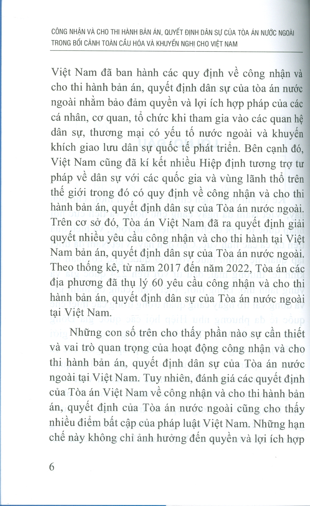 ✨Công Nhận Và Cho Thi Hành Bản Án, Quyết Định Dân Sự Của Toà Án Nước Ngoài Trong Bối Cảnh Toàn Cầu Hoá Và Khuyến Nghị Cho Việt Nam (Sách chuyên khảo) - TS. Nguyễn Thu Thuỷ chủ biên