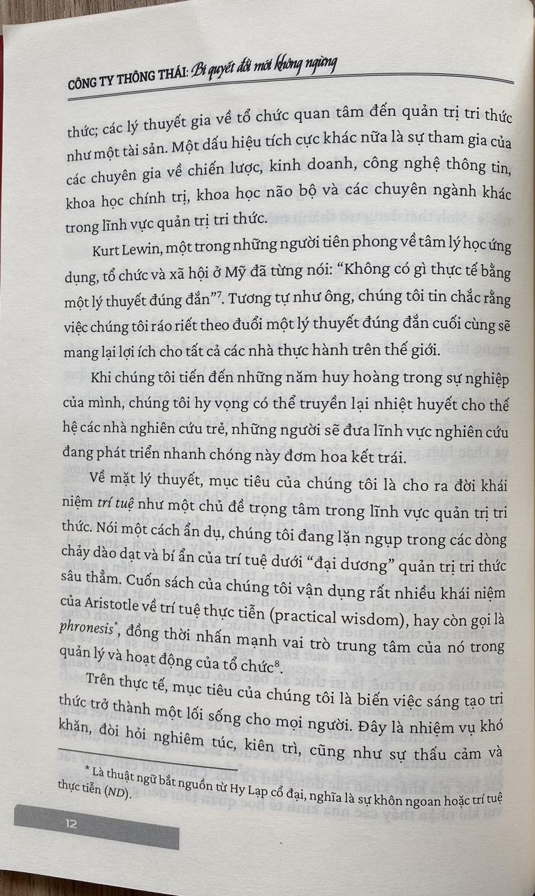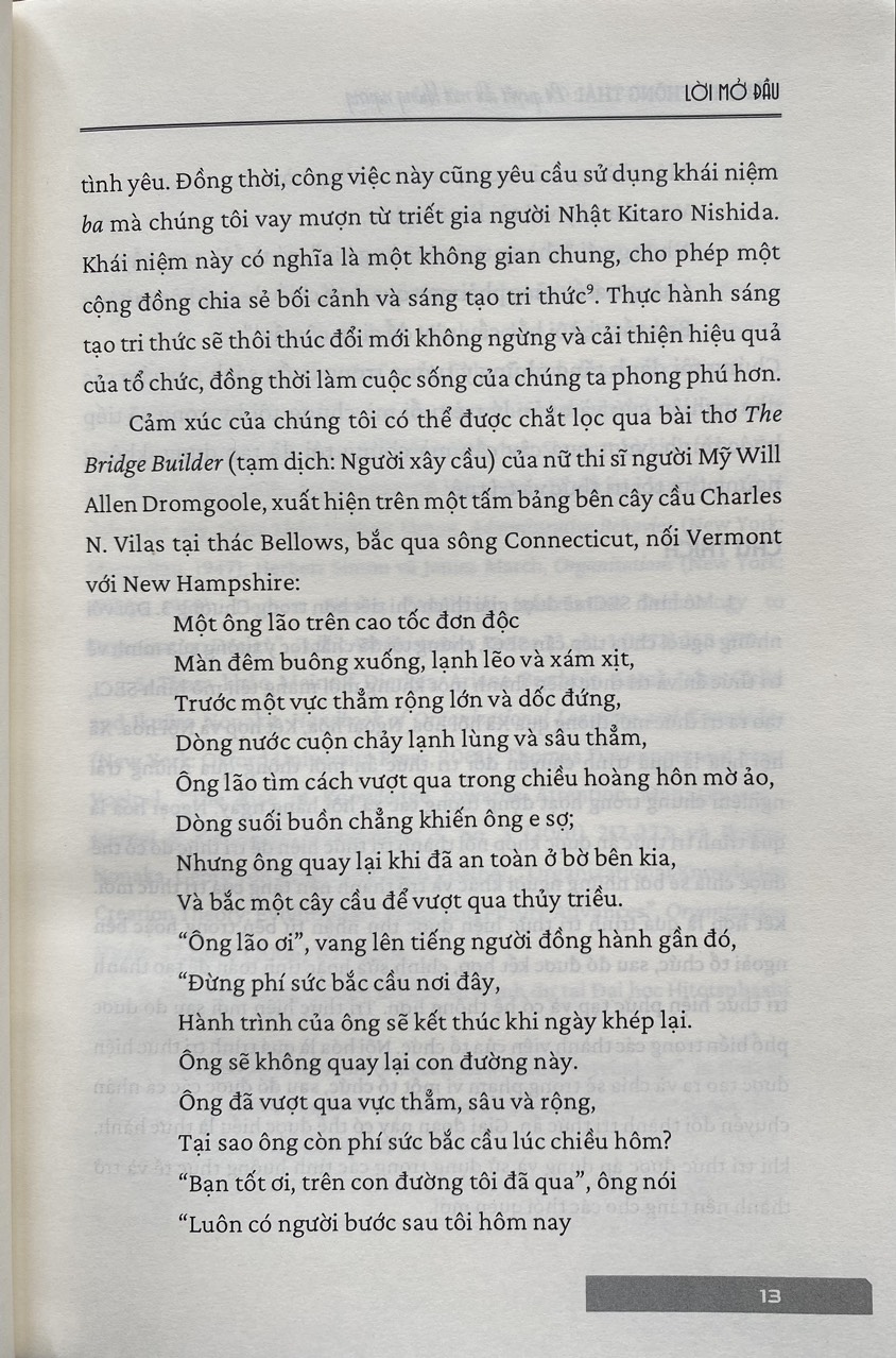 Với tiêu chí thúc đẩy một hình thức lãnh đạo nhân văn hơn, sử dụng các khả năng độc đáo của con người để đổi mới vì lợi ích của xã hội, cuốn sách không chỉ là nguồn tài liệu quý báu dành cho những người cần đi từ lý thuyết đến thực tiễn, vận dụng tri thức một cách hữu ích và áp dụng tri thức vào hành động, mà còn là nguồn tham khảo có giá trị cho các nhà lãnh đạo, nhà quản lý, học giả và đặc biệt là những bạn trẻ mong muốn trở thành những nhà lãnh đạo đẳng cấp trong một thế giới được thúc đẩy bởi những người con người liên tục đổi mới.