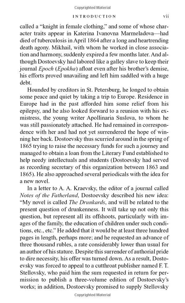 A desperate young man plans the perfect crime -- the murder of a despicable pawnbroker, an old women no one loves and no one will mourn. Is it not just, he reasons, for a man of genius to commit such a crime, to transgress moral law -- if it will ultimately benefit humanity? So begins one of the greatest novels ever written: a powerful psychological study, a terrifying murder mystery, a fascinating detective thriller infused with philosophical, religious and social commentary. Raskolnikov, an impoverished student living in a garret in the gloomy slums of St. Petersburg, carries out his grotesque scheme and plunges into a hell of persecution, madness and terror. Crime And Punishment takes the reader on a journey into the darkest recesses of the criminal and depraved mind, and exposes the soul of a man possessed by both good and evil a man who cannot escape his own conscience.