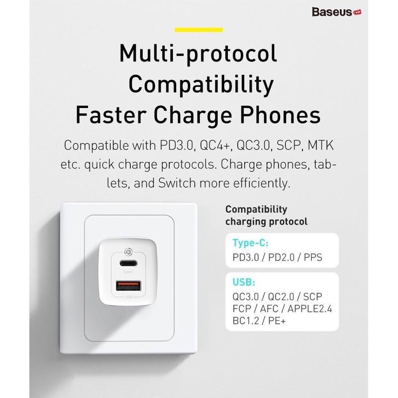 Giới thiệu sản phẩm Củ sạc nhanh nhỏ gọn Baseus Super Si Quick Charger 1C 20W - CCSUP Sản phẩm với kích thước nhỏ gọn , hỗ trợ sạc nhanh Power delivery chuẩn mới và