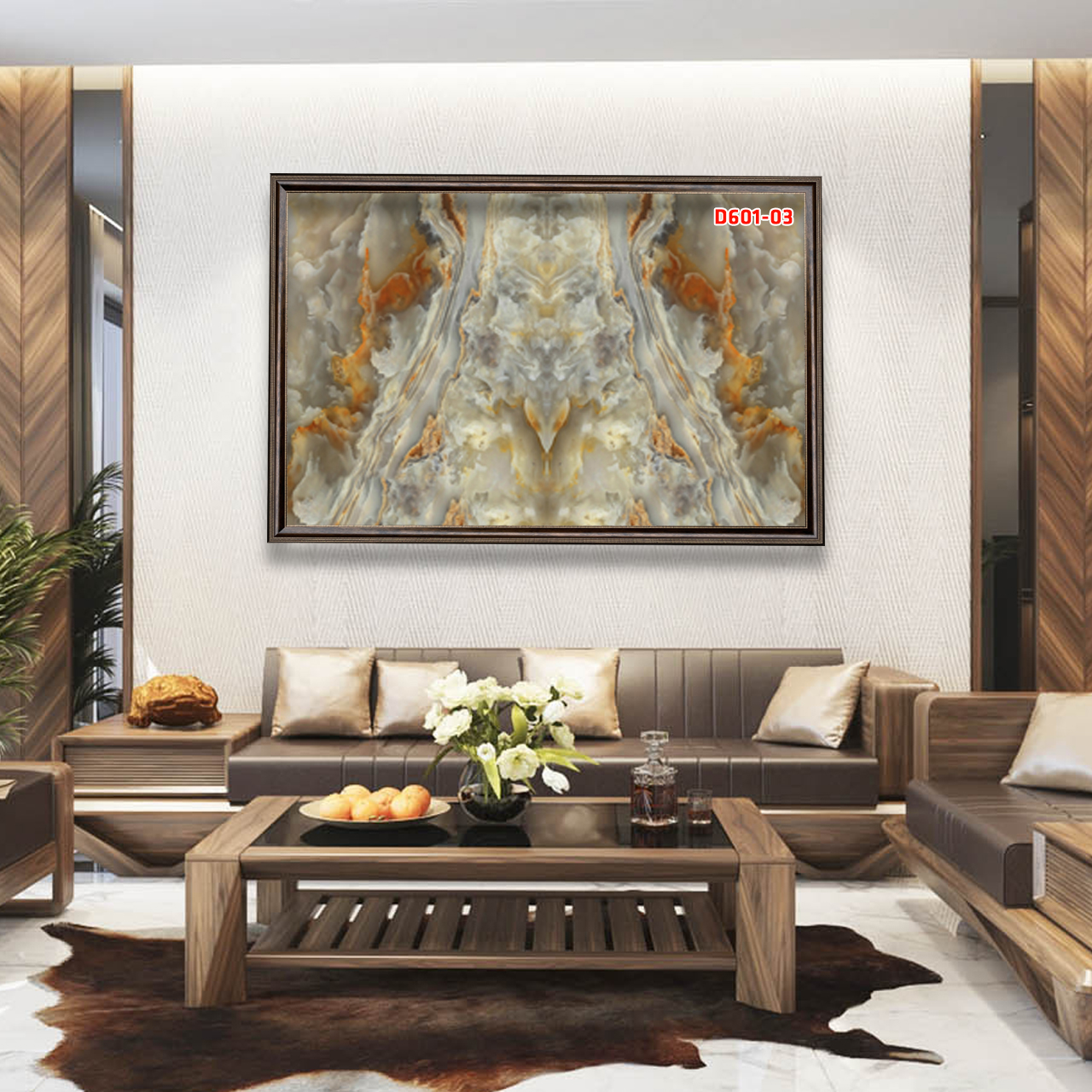 Khung Tranh : Khung tranh được làm từ chất liệu nhựa PVC giả gỗ, họa tiết nổi,màu sắc chân thực, Bản khung tranh-6cm