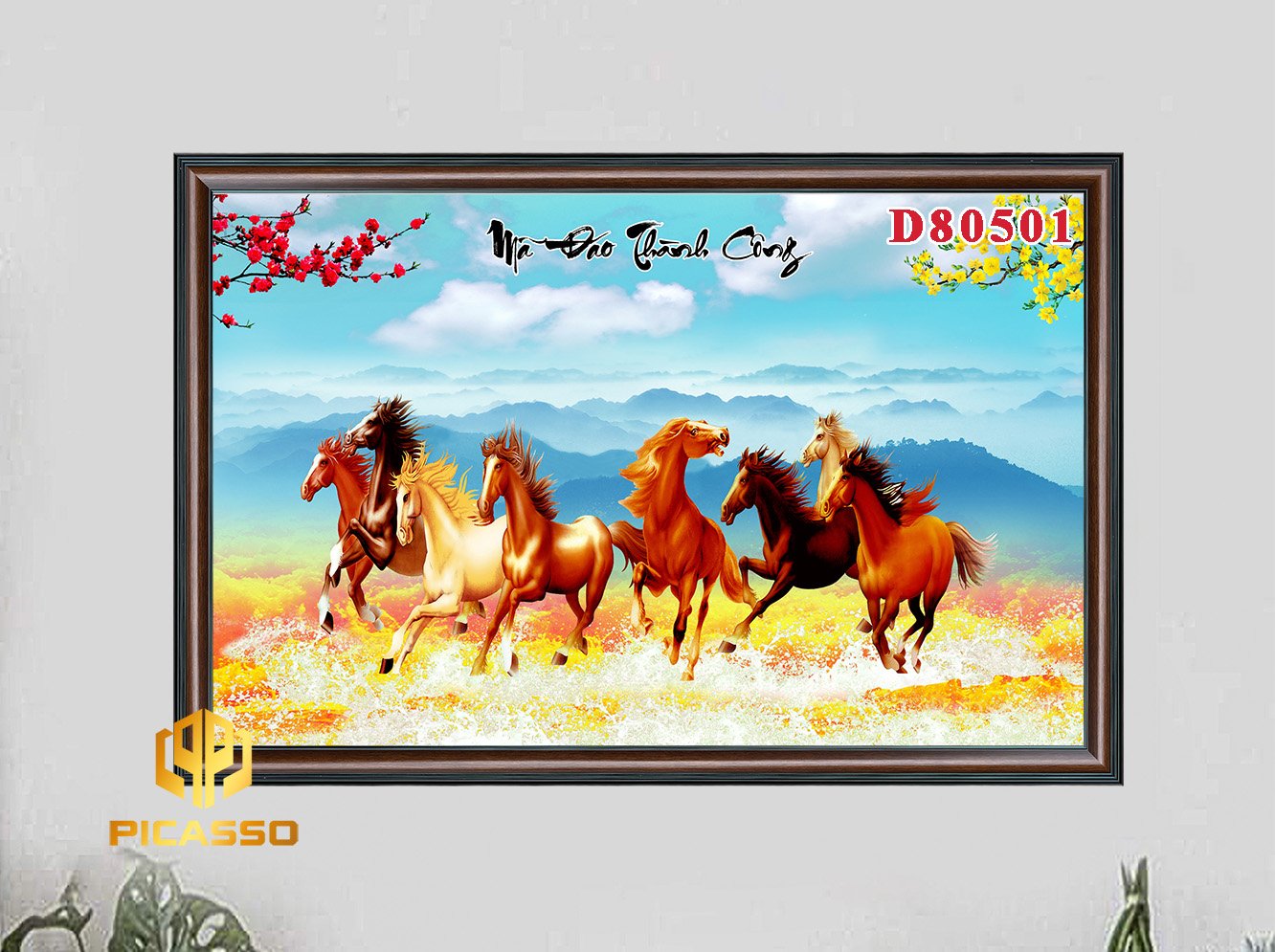 Tranh Kính 3D Mã Đáo Thành Công(Tranh Bát Mã) Đẹp. Tranh Kính Cường Lực Nhật Minh
