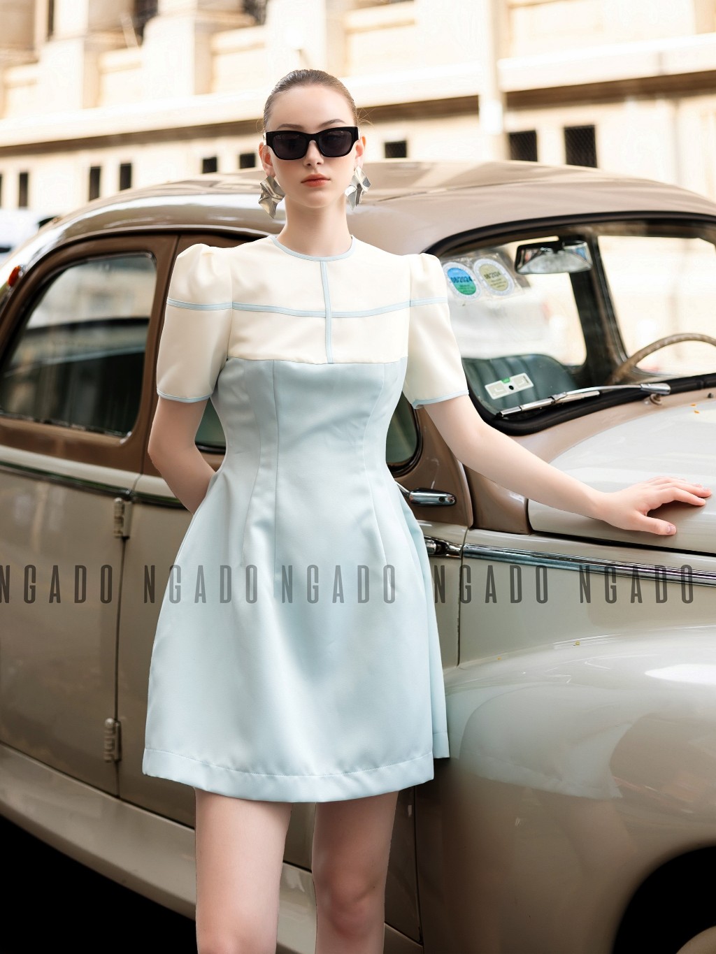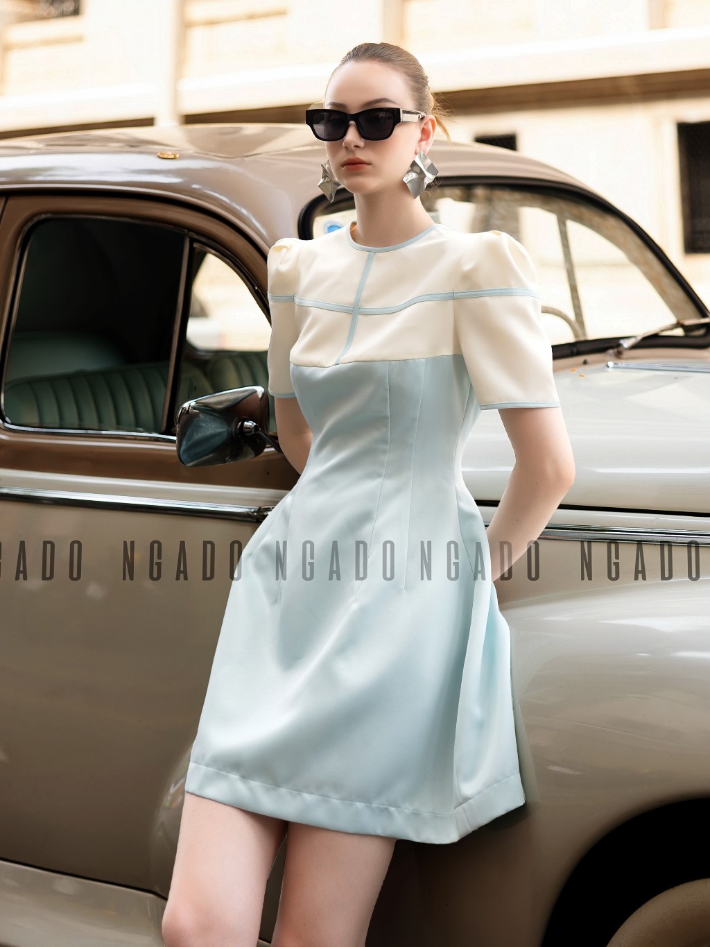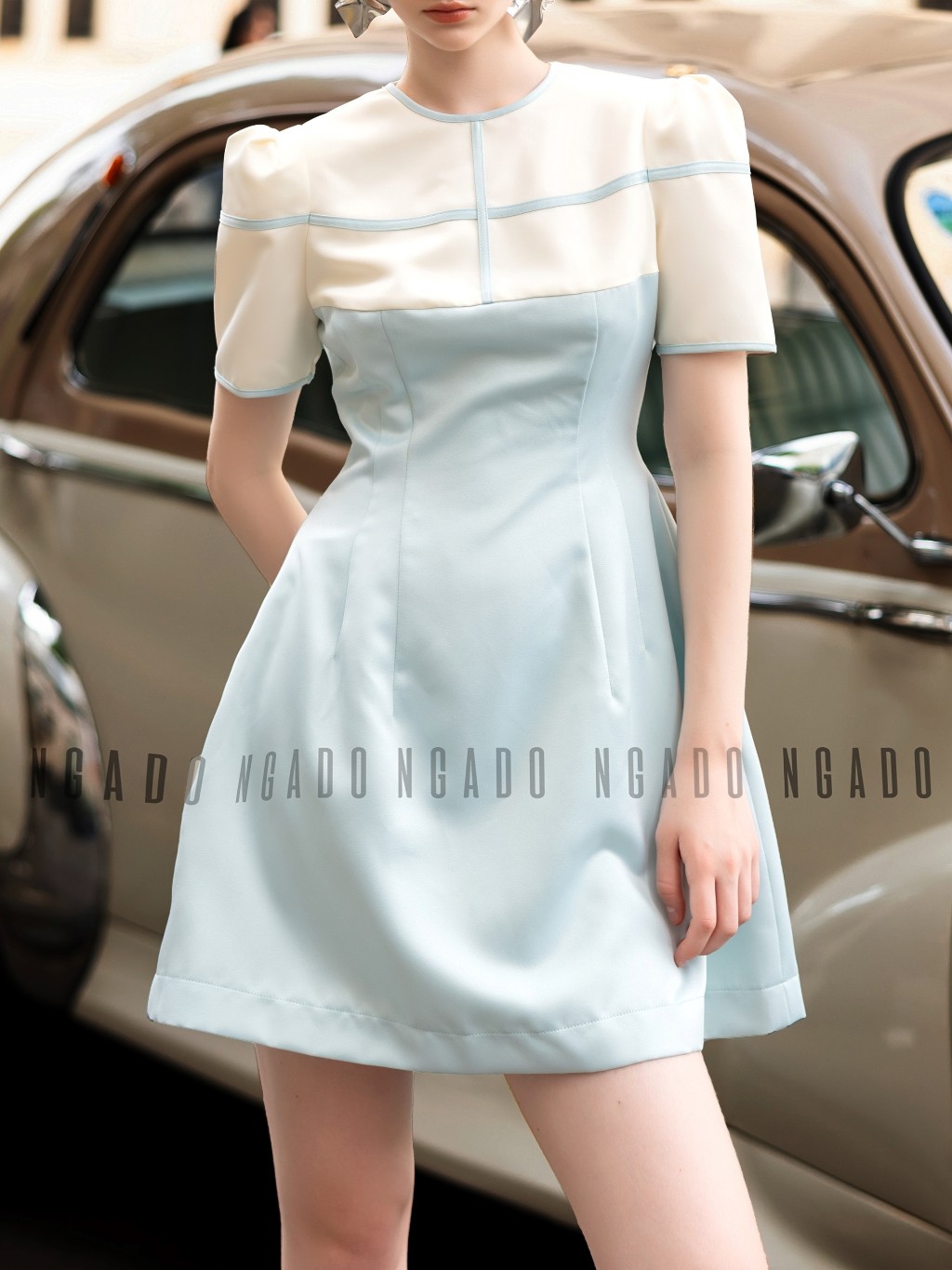 ✨Đầm xanh mint phối trắng NGADO , đầm nữ , Đầm ngắn trẻ trung , Đầm thiết kế