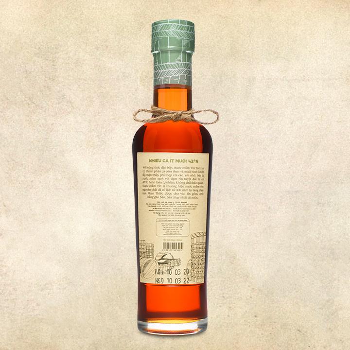 Nước mắm Tĩn nhãn xưa quý hiếm độc nhất tại Việt Nam, nước mắm được đựng trong tĩn gốm 500ml với quai xách dây thừng là nước mắm Rin Nguyên Chất kéo rút trực tiếp từ thùng lều gỗ chín chậm với cá cơm than con to béo tươi và muối tinh khiết, hoàn toàn tự nhiên, không chất bảo quản. Hàm lượng đạm 41N là đạm rin từ cá tuyệt đối. Bình gốm sẽ hạn chế tiếp xúc ánh sáng và làm nước mắm lên men lần 2 sẽ càng thơm ngon hơn. Nước mắm có màu nâu cánh gián và đậm đặc, thích hợp với người sành ăn, dùng trong buổi tiệc đãi khách, hoặc dùng làm quà biếu tặng khách quý.