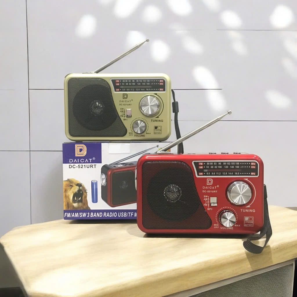 Mua tại TiktokĐài Radio FM DAICAT DC-521URT - Loa nghe nhạc DC-521URT Hỗ Trợ USB, Thẻ nhớ, Chạy Pin và Điện 5V