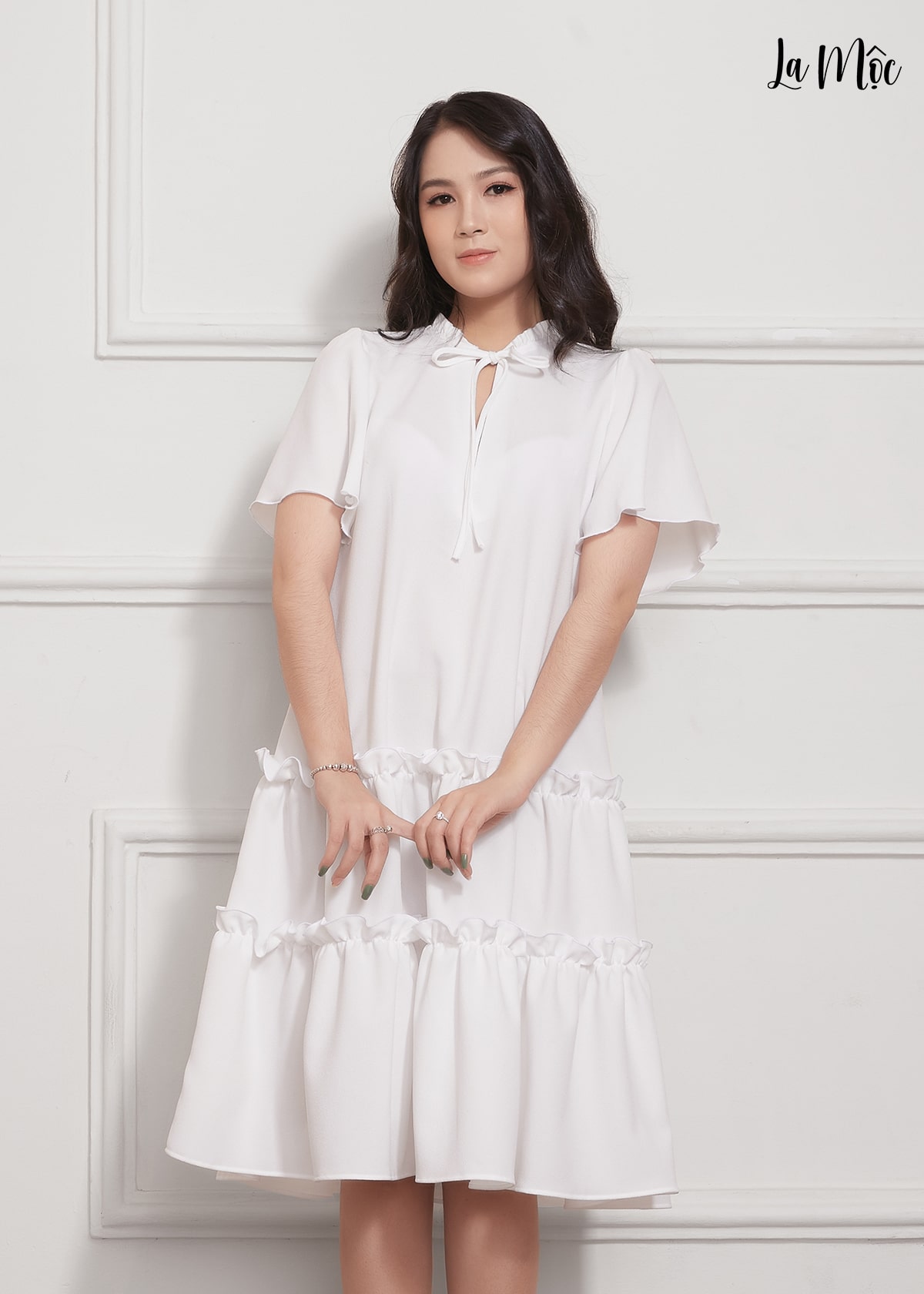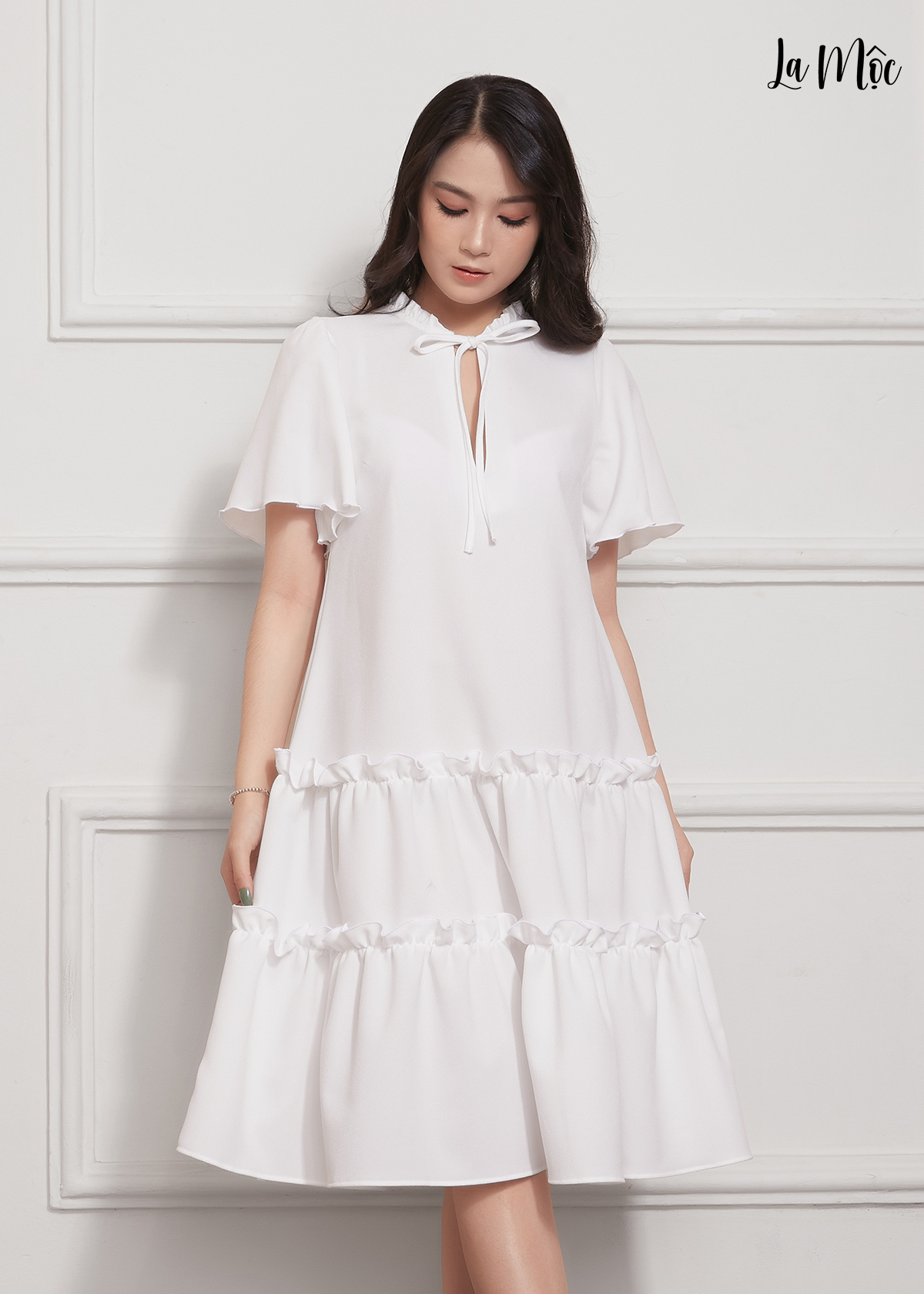 ✨Đầm Babydoll Lụa Crep Nhún Bèo Tay Loe Maxivic, La Mộc - LM012206