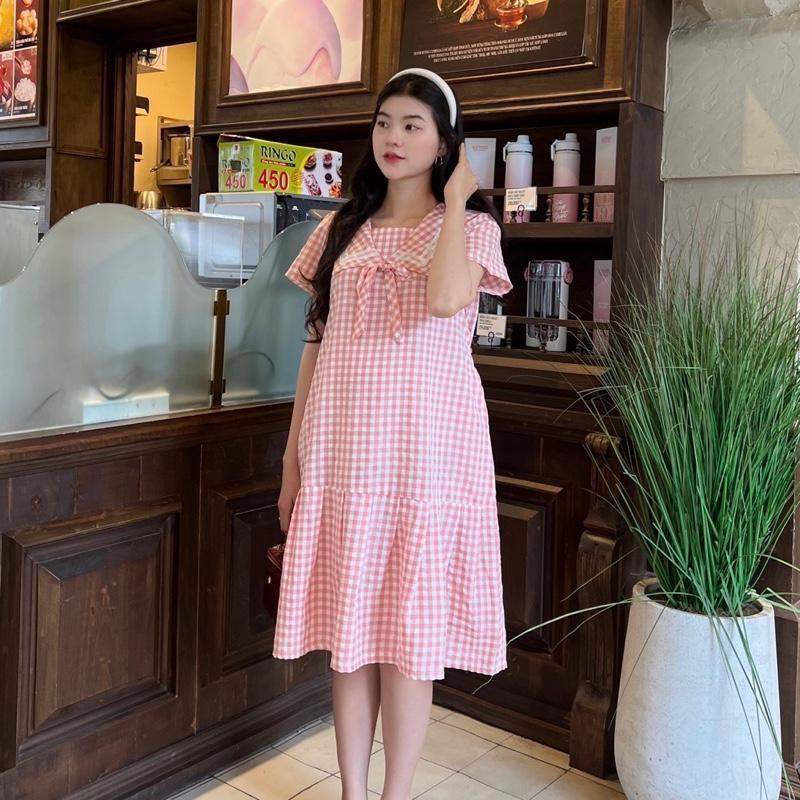 ÔNG TIN SẢN PHẨM: Đầm bầu karo cổ thuỷ thủ phom babydol năng động, trẻ trung. Chất vải cotton hàn nhẹ mát, thấm hút mồ hôi. Điểm nhấn tay phồng nhẹ dễ thương khi mặc
