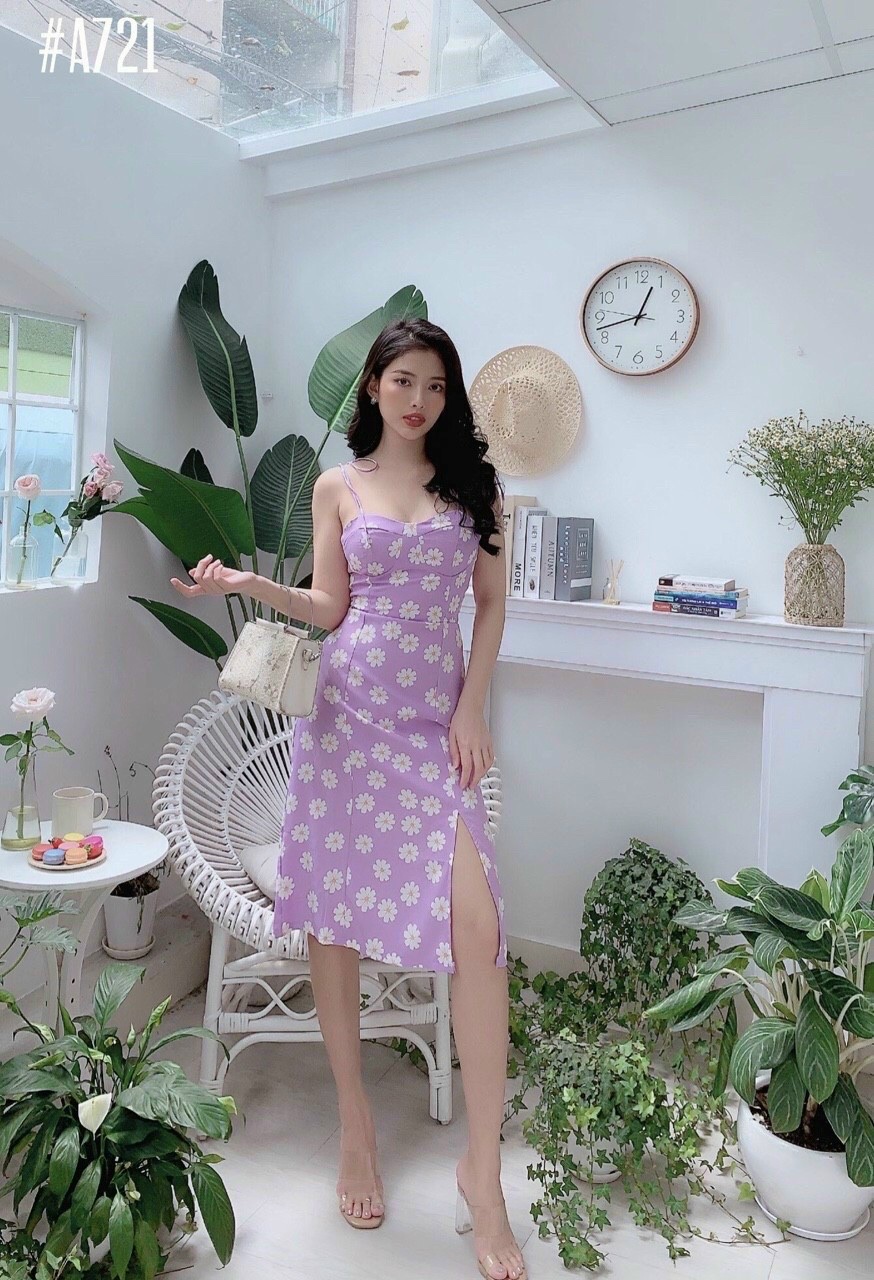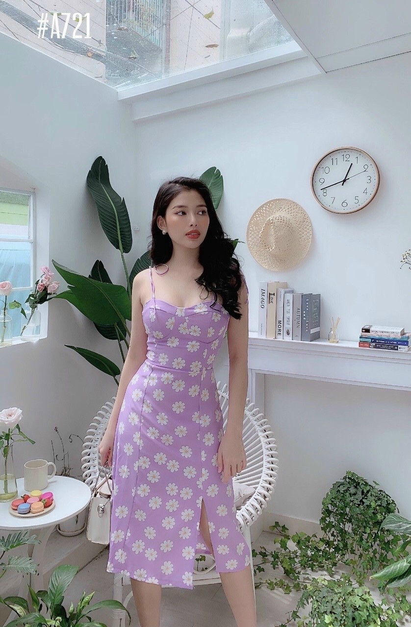 ✨Đầm cúc họa mi 2 dây màu tím sang trọng trẻ trung