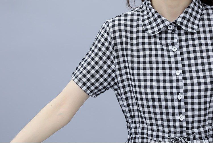 Váy sơ mi kẻ caro phối thêu nơ dễ thương, mang đến vẻ ngoài năng động nhưng vẫn nữ tính. Thiết kế: Dáng suông thoải mái, cổ sơ mi thanh lịch. Điểm nhấn: Họa