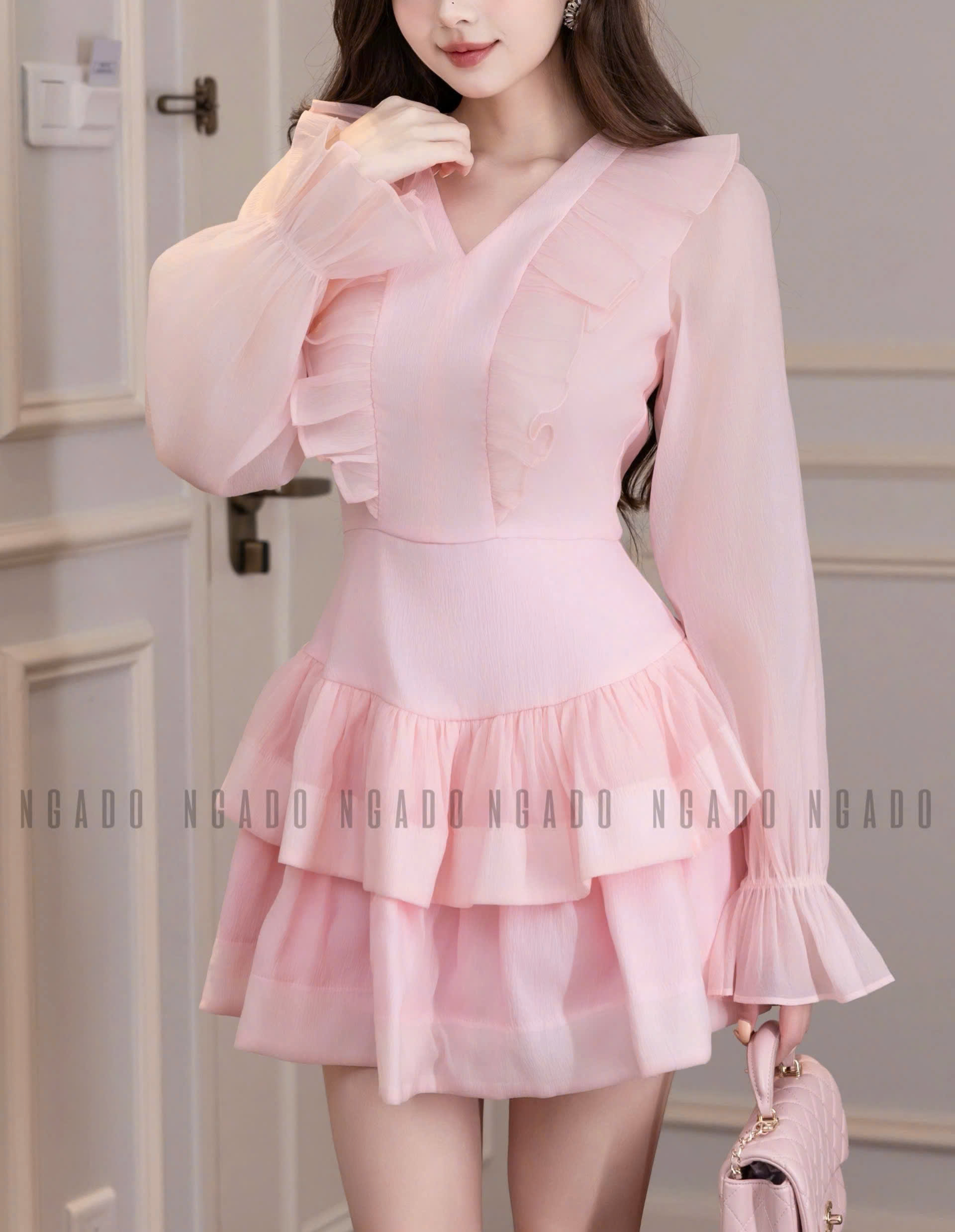 ✨Đầm hồng tay voan NGADO , đầm voan , đầm nữ , đầm dự tệc, dạo phố